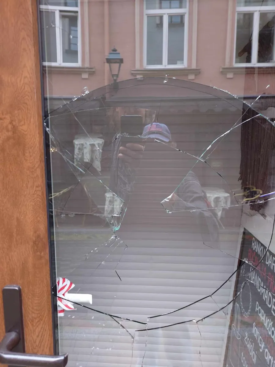 По словам владельцев магазина, кроме надписей и разбитого стекла больше повреждений нет. На месте происшествия работает полиция.