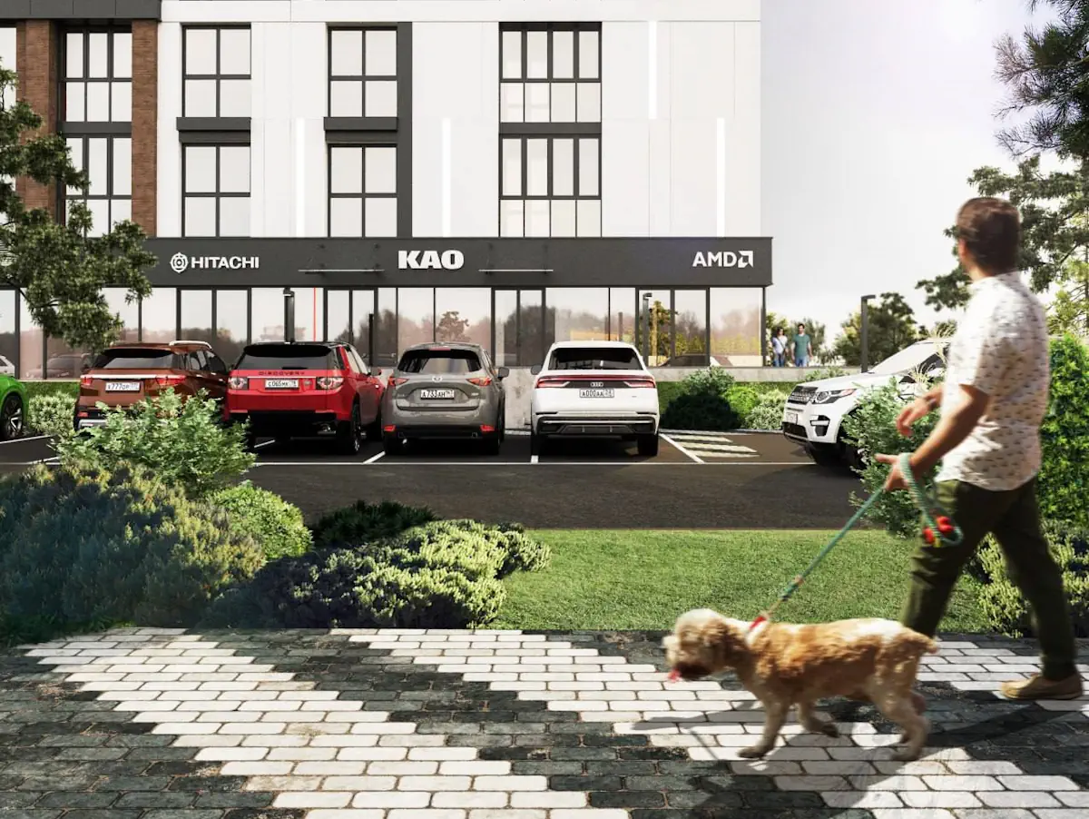 Двор планируют озеленить, там высадят туи и кустарники. Парковку для автомобилей разместят в отдалении от дома, чтобы выхлопные газы и шум не мешали жителям.