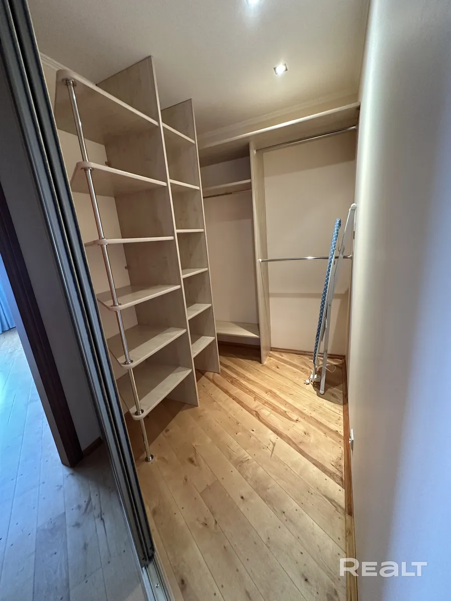 Есть еще одна свободная комната, в которой можно организовать вторую спальню или кабинет. Между комнат можно заметить встроенные двери шкафа-купе, за которыми спряталась просторная гардеробная.