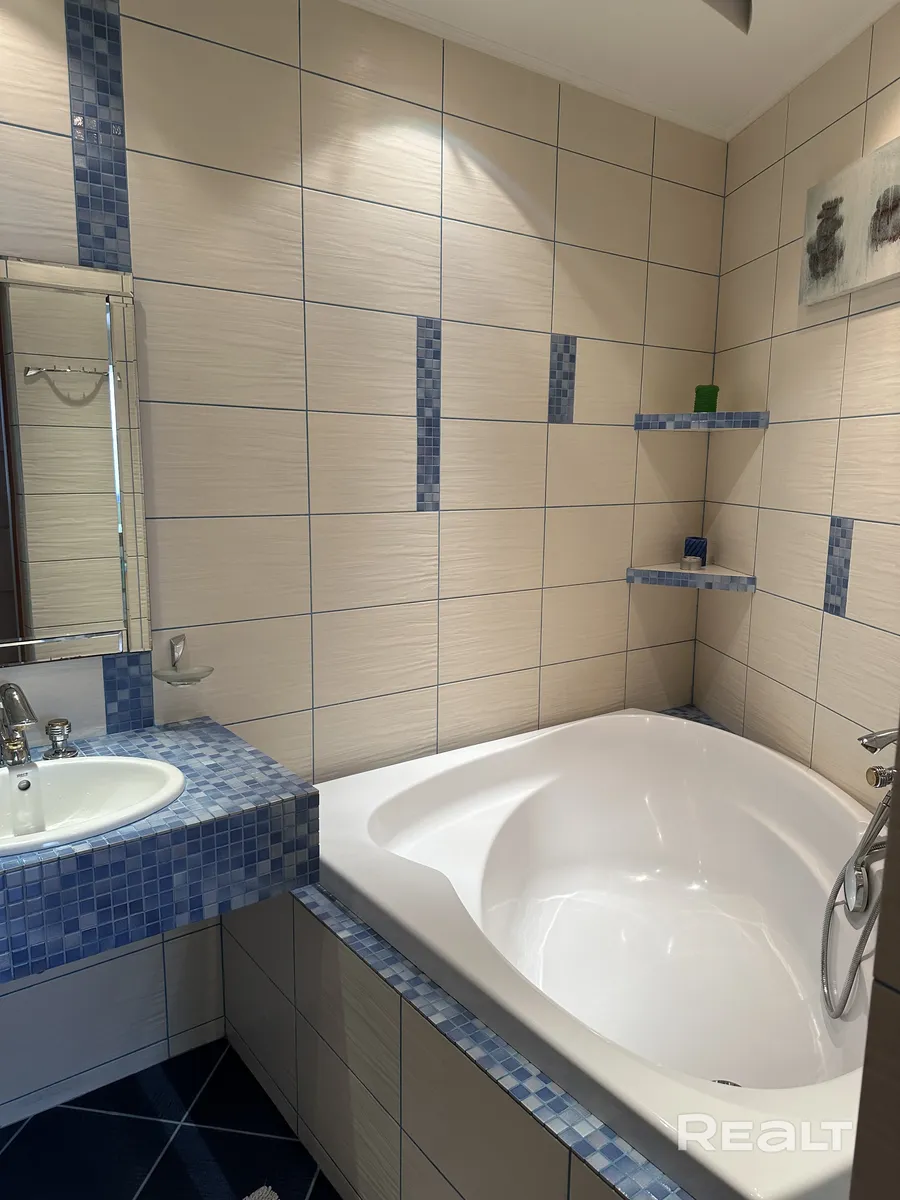 Трехкомнатную квартиру от хозяев с фантазией продают на улице Брикеля в Гродно. В комнатах – потолки сложной формы, лепнина на арках, полки в стене и зонирование в санузле.
