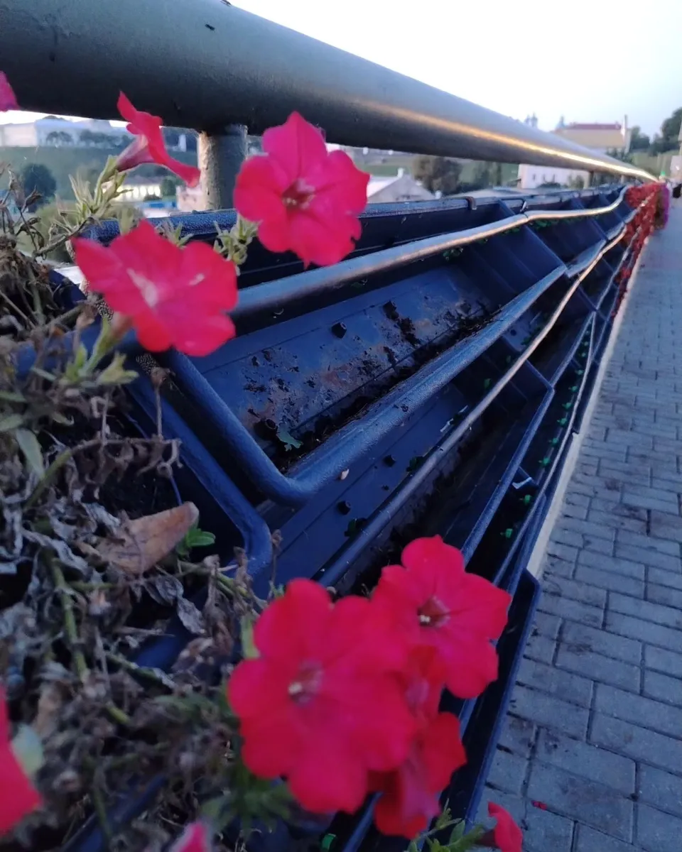 Часть цветочной стены из петуний, которую сделали в этом году на Старом мосту, пропала, несмотря на систему капельного полива. Сильный ветер в конце июля повыворачивал горшки с цветами по одной стороне моста, и многие петунии в итоге высохли и погибли. «Гроднозеленстрой» пытался спасти, что возможно, а погибшие цветы заменить. Правда, тогда оказалось, что… на базе закончились цветы.