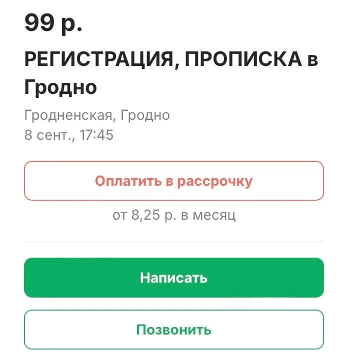 Hrodna.life нашел на «Куфаре» четыре актуальных объявления о регистрации в Гродно. Правда, одно из них касается прописки для иностранных граждан. Стоимость услуг колеблется от 80 до 100 рублей.