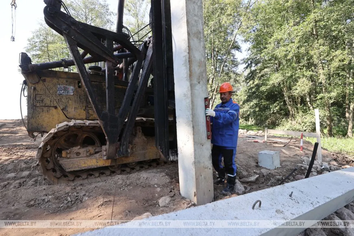 После сильного ливня, который прошел 20 августа, в Индурском сельсовете обрушились сразу два моста — около деревни Кунцевщина и около Коваличей. Один из них в сентябре начали строить заново. Сначала пришлось убрать остатки старого моста и подготовить площадки для сооружения опор. К 16 сентября приехала сваебойная установка, привезли все нужное оборудование и плиты. 18 сентября начали устанавливать железобетонные сваи. Для опор моста их понадобиться 32. Установку планируют завершить в течение недели, рассказал главный инженер филиала «Автомост» КУП «Гроднооблдорстрой» Дмитрий Карабинский для БелТА. На следующей неделе начнут сооружать заборную стенку на первой опоре. Строительству мешают некоторые деревья — их планируют спилить.