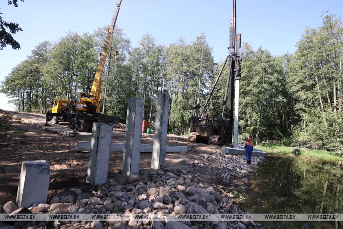 Мост через реку Лашанку под Гродно, который смыло сильным ливнем в августе, начали строить заново.