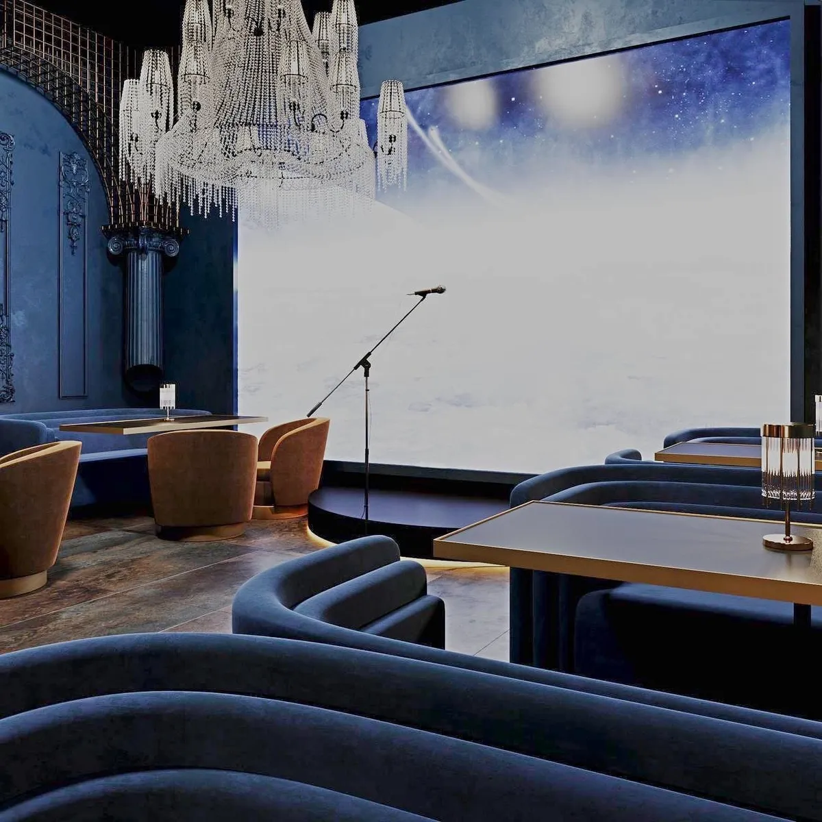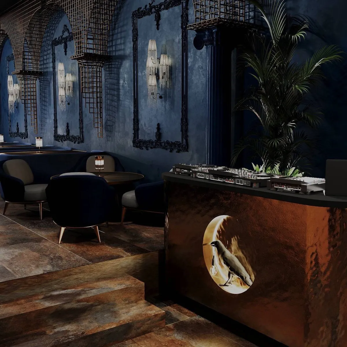 «Ворона» будет совмещать в себе караоке-клуб с небольшим баром с коктейлями, кухней и кальянами. Интерьер оформляют в современном стиле с элементами ар-деко и роскоши. Вас встретят пальмы в кадках, диваны глубокого синего цвета, синие и черные стены, под потолком — большая хрустальная люстра с подвесками. В Instagram заведения рассказали, что открытие скоро.