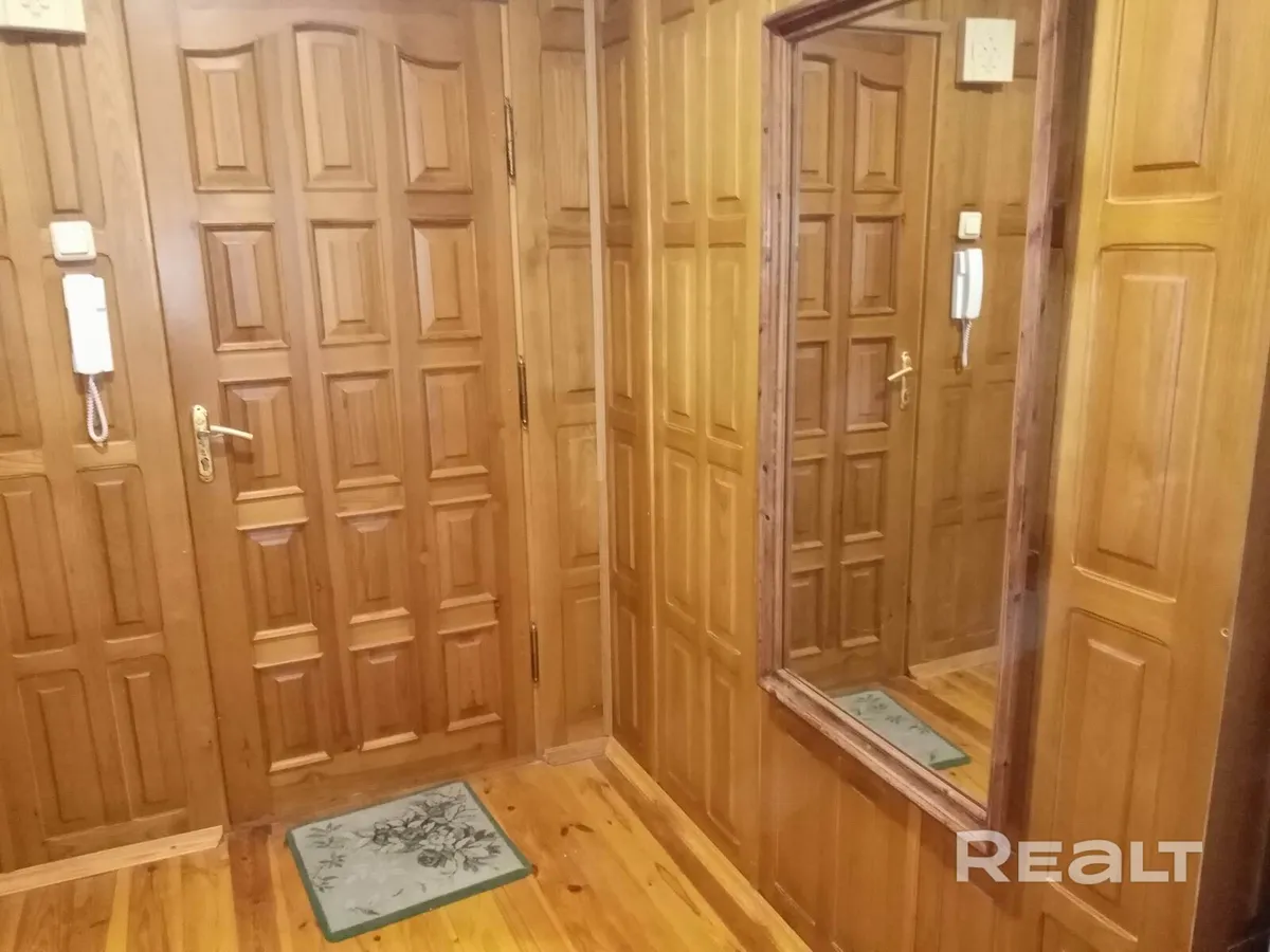 В Гродно продается двухкомнатная квартира на улице Лиможа, 48. На звукоизоляцию жильцы точно не пожалуются: все стены жилых комнат и коридора отделаны «по-богатому» — панелями из натурального ясеня.