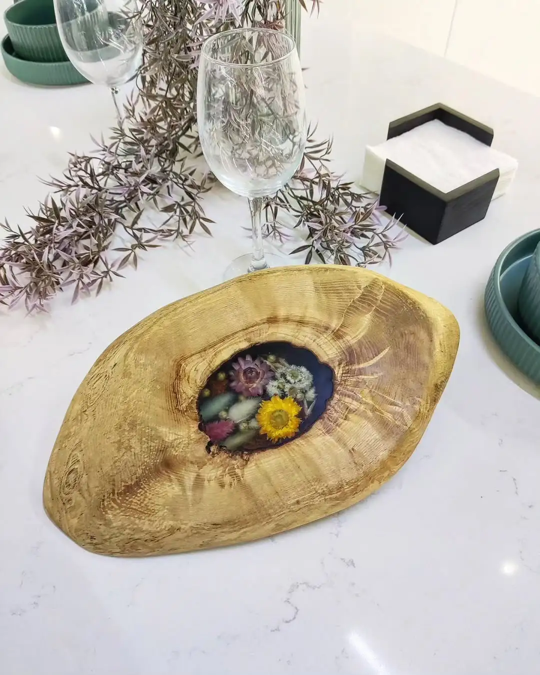 Гродненец Юрий делает сервировочные доски и декорирует их сухоцветами и эпоксидной смолой. Свои необычные изделия мужчина показывает в TikTok. Hrodna.life узнал, где можно купить изделия Юрия и во сколько они обойдутся.