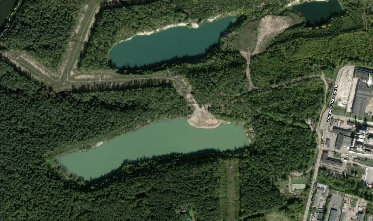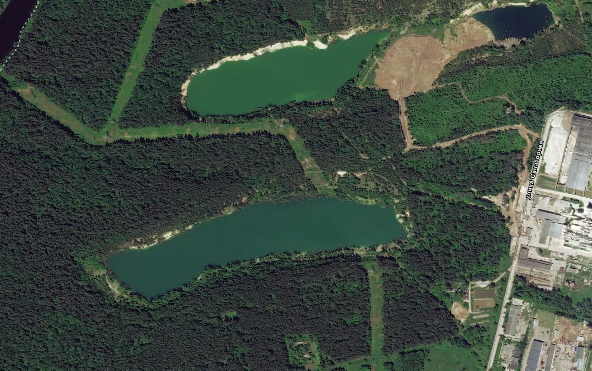 Карьер постепенно засыпали с 2017 года. Как менялась площадь воды, видно по спутниковым снимкам Синьки и Зеленки.
