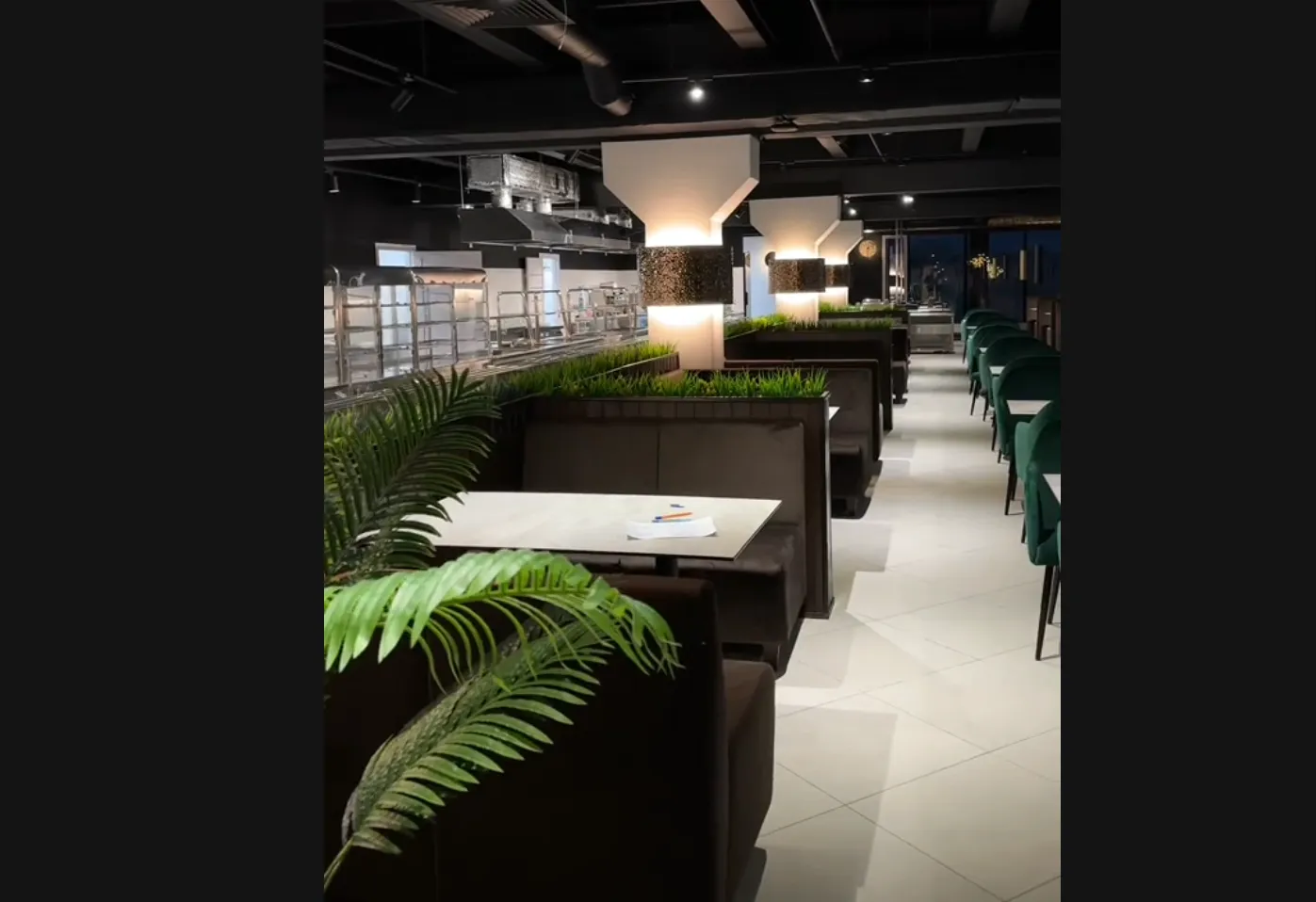 В интерьере — искусственная зелень, столы с диванами и зеленые кресла. Про последние в комментариях пошутили, что «их где-то по скидке продают». Витринные окна с видом на город сохранили, часть посадочных мест будет возле них. Сохранят и формат самооблуживания.
