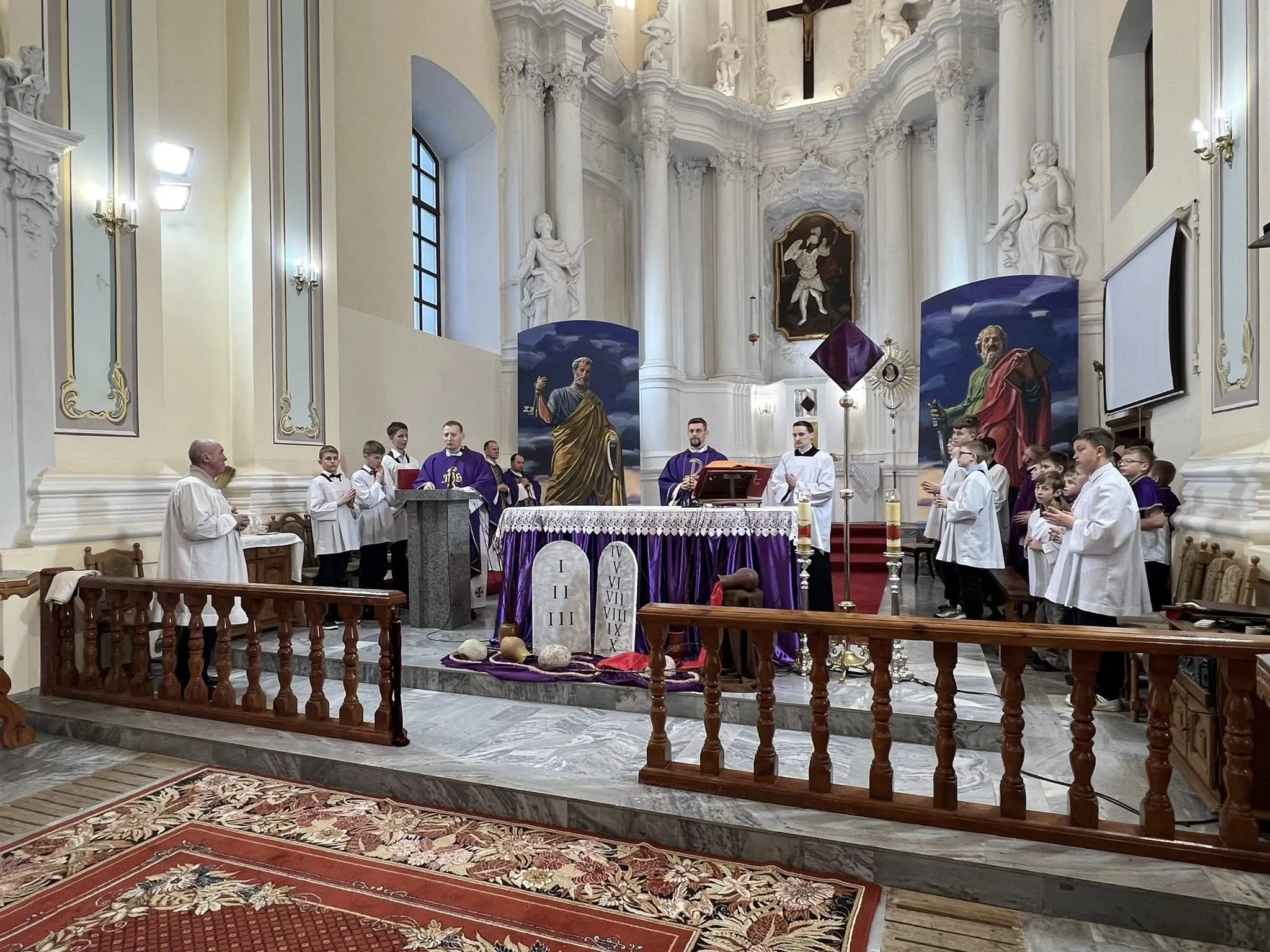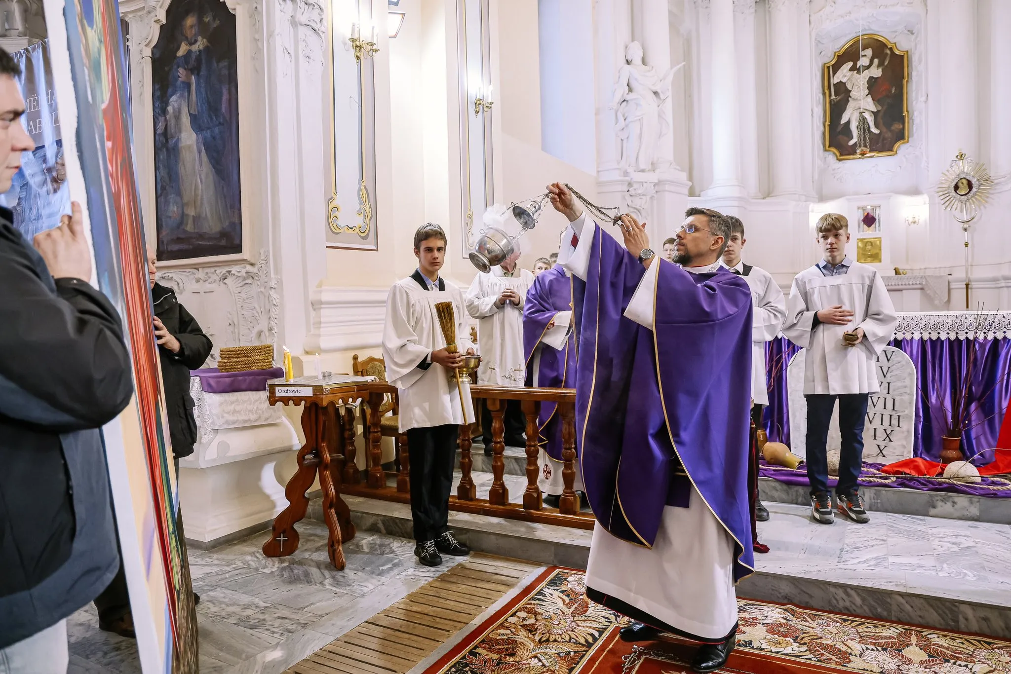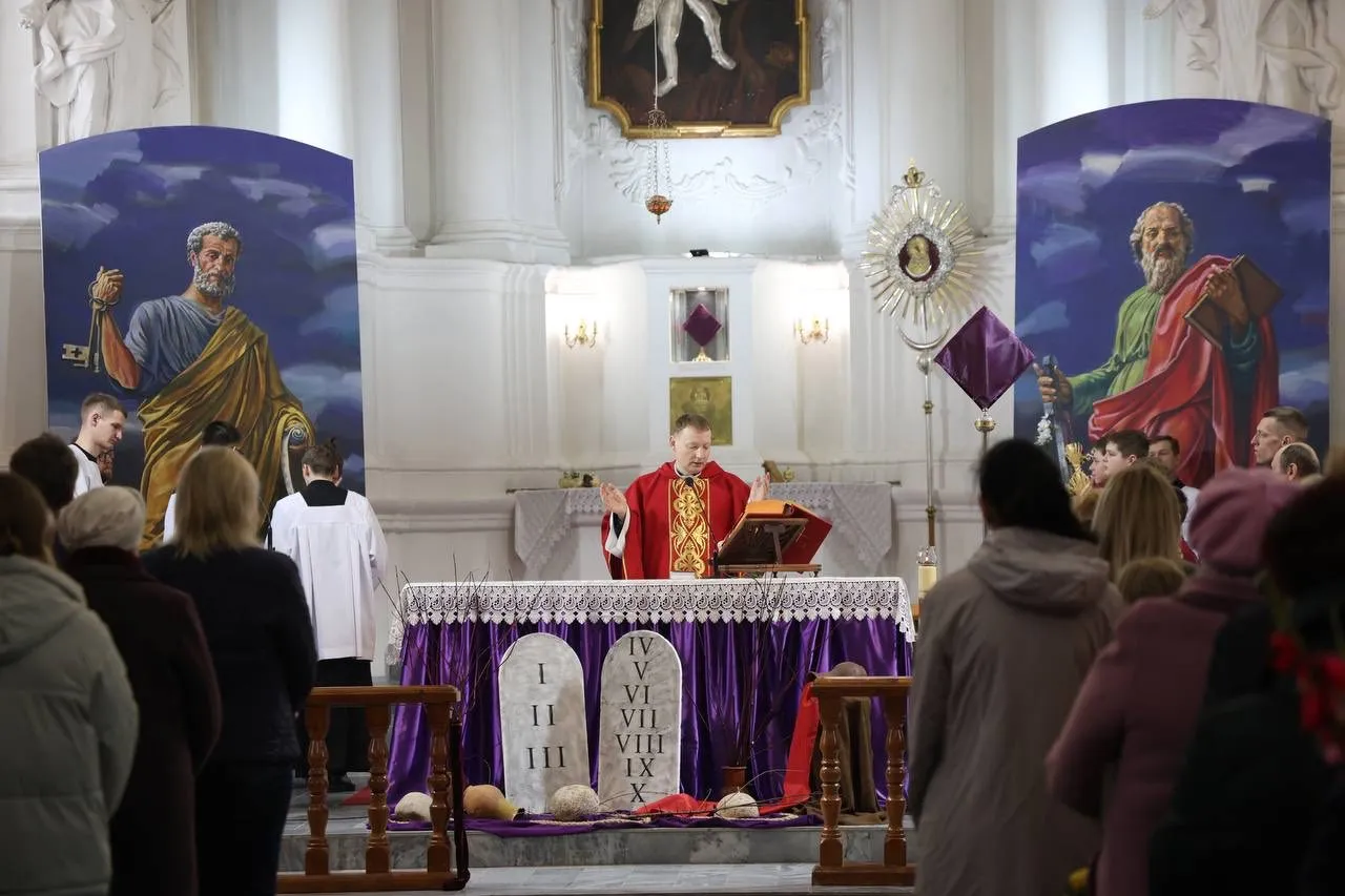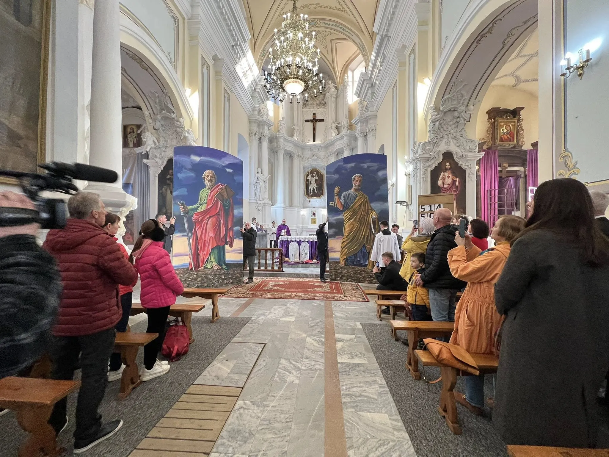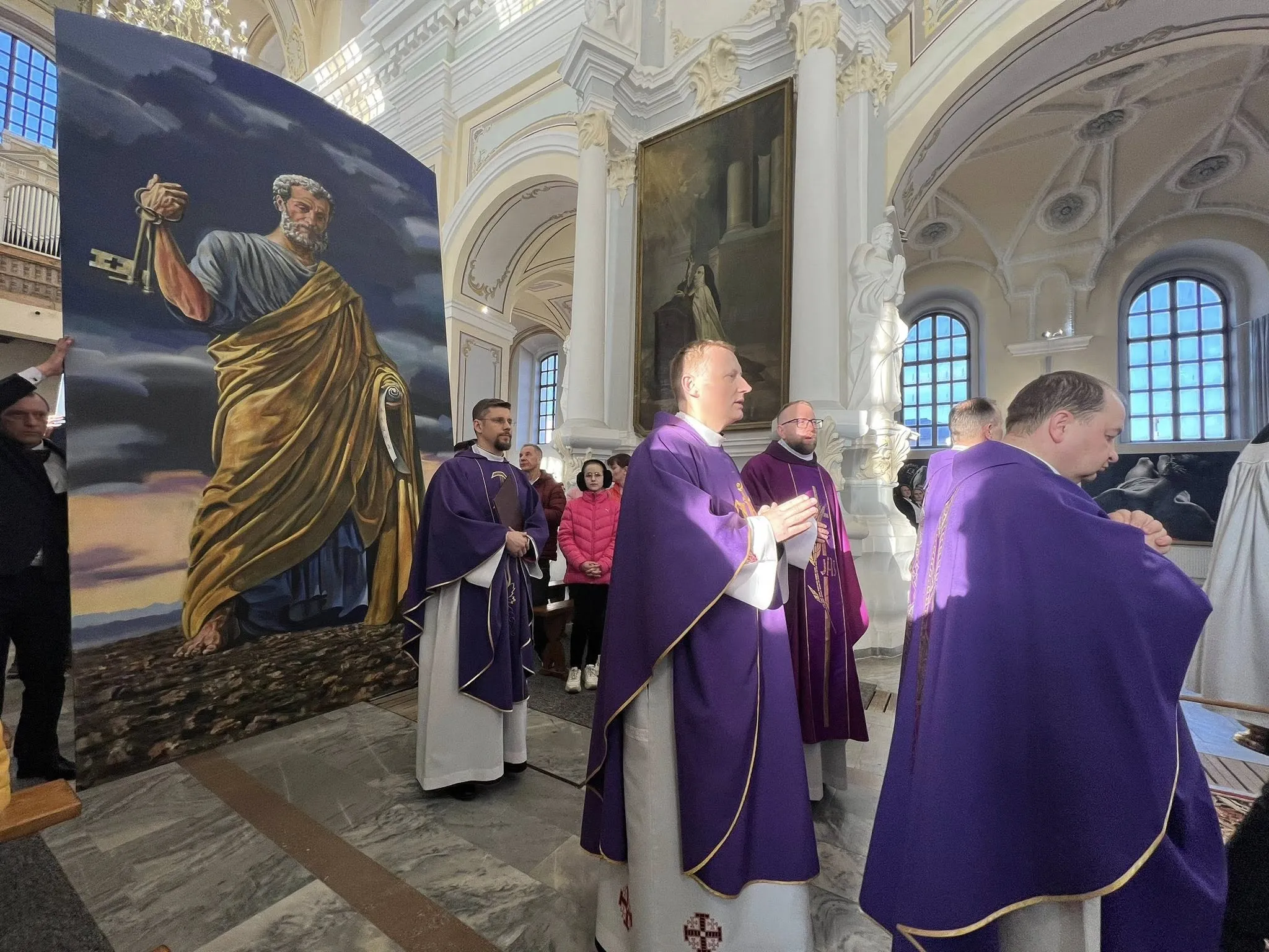Образы Петра и Павла освятил временный поверенный Ватикана. Их поставили около алтаря. Картины Сергей Гриневич создавал специально для новогрудского костела в начале 2025 года.