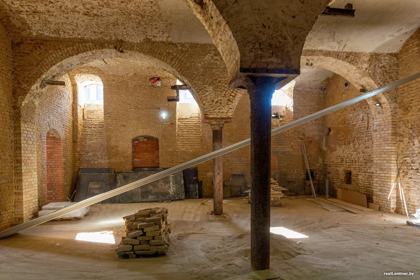 Под главной частью дворца находятся глубокие подвалы с потолками от 5 до 10 метров. Площадь — около 220 кв. м. Здесь откроется атмосферный пивной ресторан с варочным оборудованием. Пиво будут варить на месте, отдельно будет зала для гостей. Дневной свет будет проникать через небольшие окна под потолком, сохранят оригинальную кирпичную кладку. Добраться до него можно будет на лифте или по лестнице.