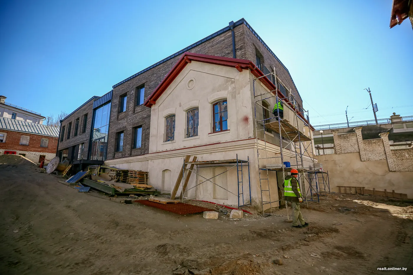 Стены основного корпуса сохранят оригинальный вид — с уникальной кирпичной кладкой «пальчаткой», сделанной вручную. На кирпичах видны отпечатки пальцев мастеров, и каждый из них тщательно очищен и уложен по схемам, воссозданным по техникам 300-летней давности.