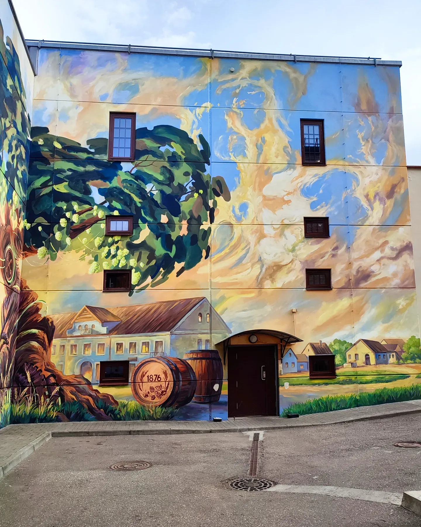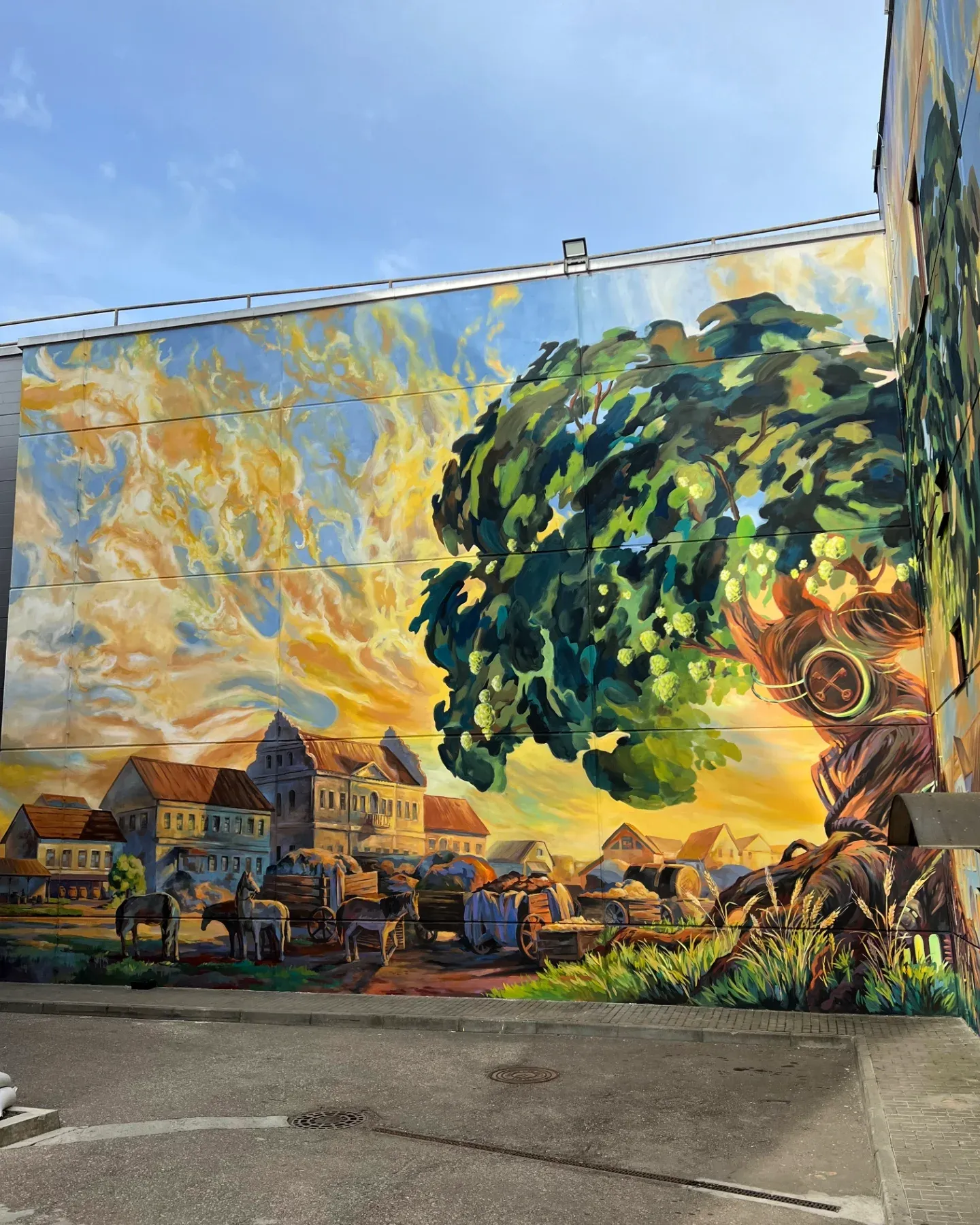 Мурал создали специально для «Музея Лидского бровара«. Увидеть его можно во время экскурсии на пивоварню 1876 года основания.