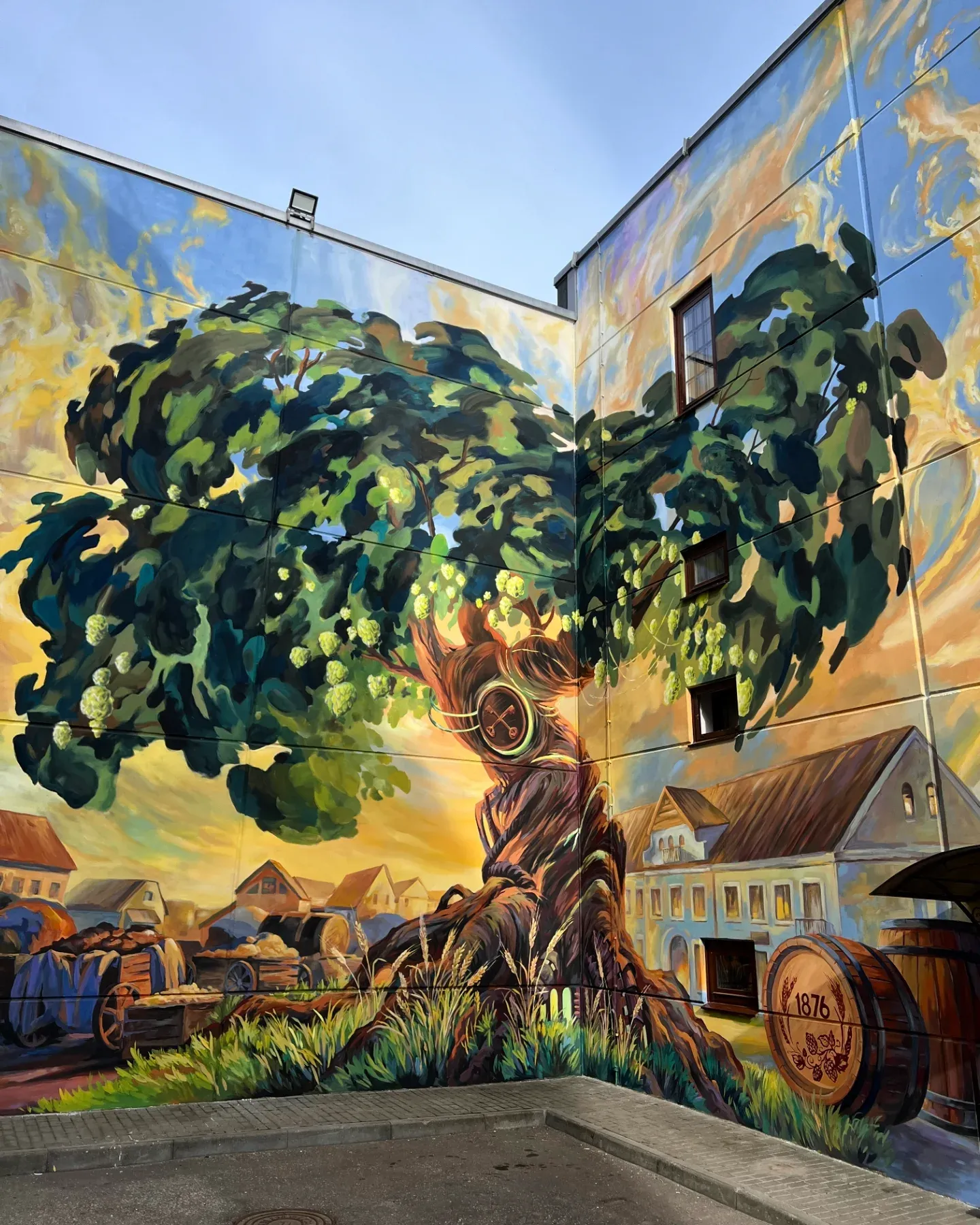 Новый мурал находится на территории завода «Лидское пиво», возле исторического здания лидской пивоварни, где и расположен музей. Сюжет отсылает к основанию лидской пивоварни. В центре композиции — увитое хмелем дерево с колосьями у корней, вокруг него — груженые повозки, как на ярмарке, и пивные бочки, а на заднем фоне расположились исторические здания. На одной из бочек стоит дата — 1876. Это дата основания лидской пивоварни. Над старым городом раскинулось небо с освещенными солнцем облаками, которые цветом и формой напоминают брызги светлого пива.