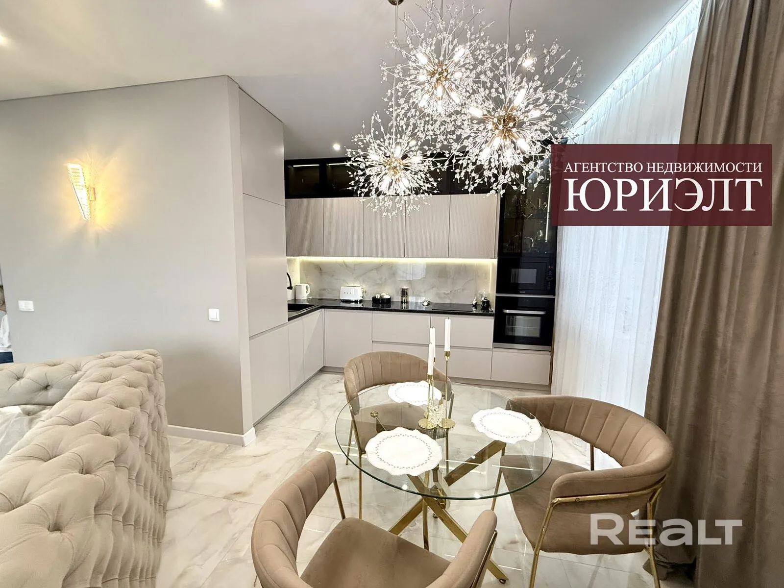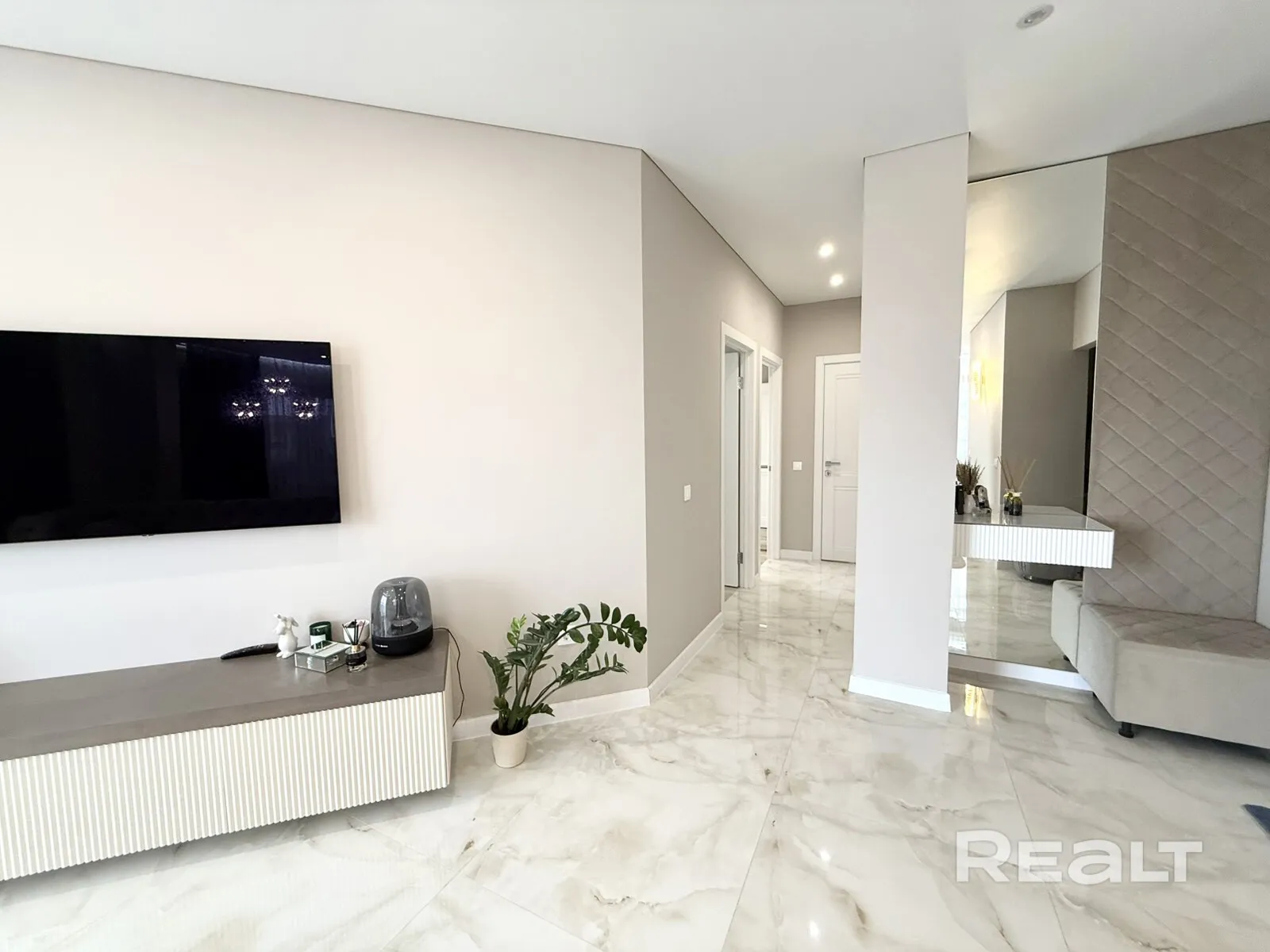 Квартира находится на 13-м этаже из 16. Ёе общая площадь — 76,3 м², жилая — 53,7 м². Высота потолков — 2,76 м. В отделке использованы современные материалы и дорогая сантехника, установлена современная система освещения. Есть балкон и лоджия.
