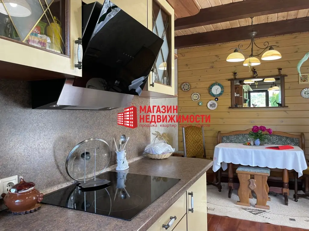 К дому подведены центральные электричество и газ, вода — из собственной скважины, канализация — переливной септик. Отопление обеспечивает двухконтурный котел Vaillant, установлен бойлер на 180 л. В доме остается встроенная мебель и техника, остальное — по согласованию. Вся сантехника — импортного производства. Интерьер в доме в деревенском стиле, напоминает агроусадьбу.