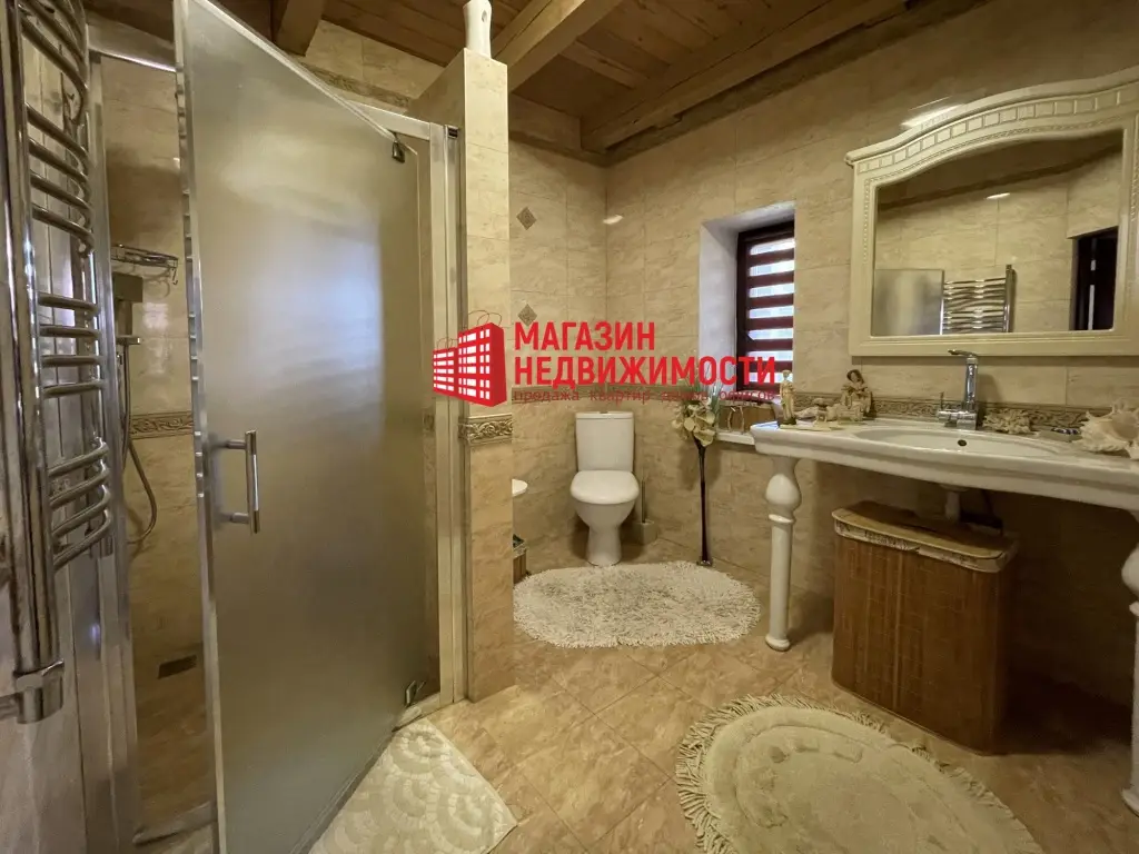 Дом с мансардой находится в деревне Глядовичи. Он был реконструирован в 2011 году и полностью готов к проживанию. Его общая площадь — 167,7 кв. м, из них жилые помещения занимают 159,3 кв. м. На первом этаже расположены четыре комнаты, кухня и санузел, на втором — комнаты с выходами на балконы, есть уютная терраса с камином. Потолки — 2,8 м на первом этаже и 2,54 м на мансарде. Стены отделаны евровагонкой, полы — доска и керамическая плитка, крыша покрыта гибкой черепицей шинглас. Входная дверь металлическая, в окнах энергосберегающие стеклопакеты. На участке установлено видеонаблюдение и автоматические откатные ворота.