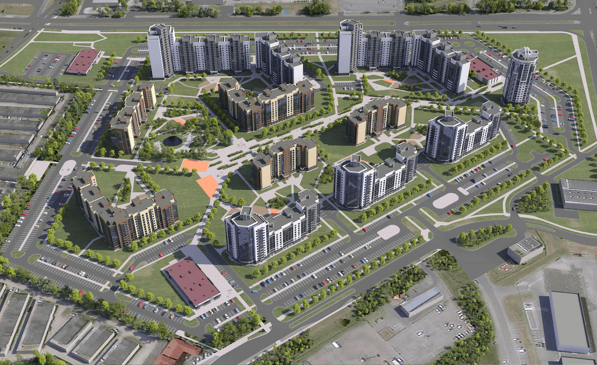 Застройку спроектируют таким образом, что дома будут защищать дворы от шума и ветра. Это сделают, потому что микрорайон находится рядом с трассой. Район находится на въезде в город — поэтому архитекторы особенно внимательно отнеслись к его оформлению.