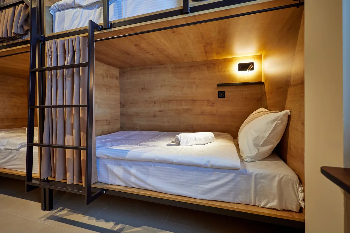 В хостеле — 9 номеров: 4-местный женский на 14 кв.м., 4-местный смешанный на 16 кв.м., 6-местный женский на 16 кв.м., 6-местный смешанный на 19 кв.м., 10-местный смешанный на 27 кв.м., 12-местный смешанный на 29 кв.м.