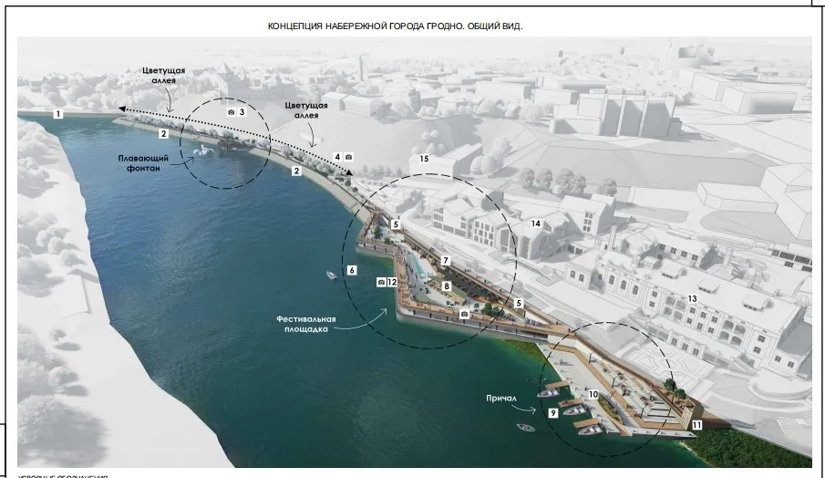 Появится смотровая площадка в виде углового мостика с видом на Неман, рядом установят плавающий фонтан.
