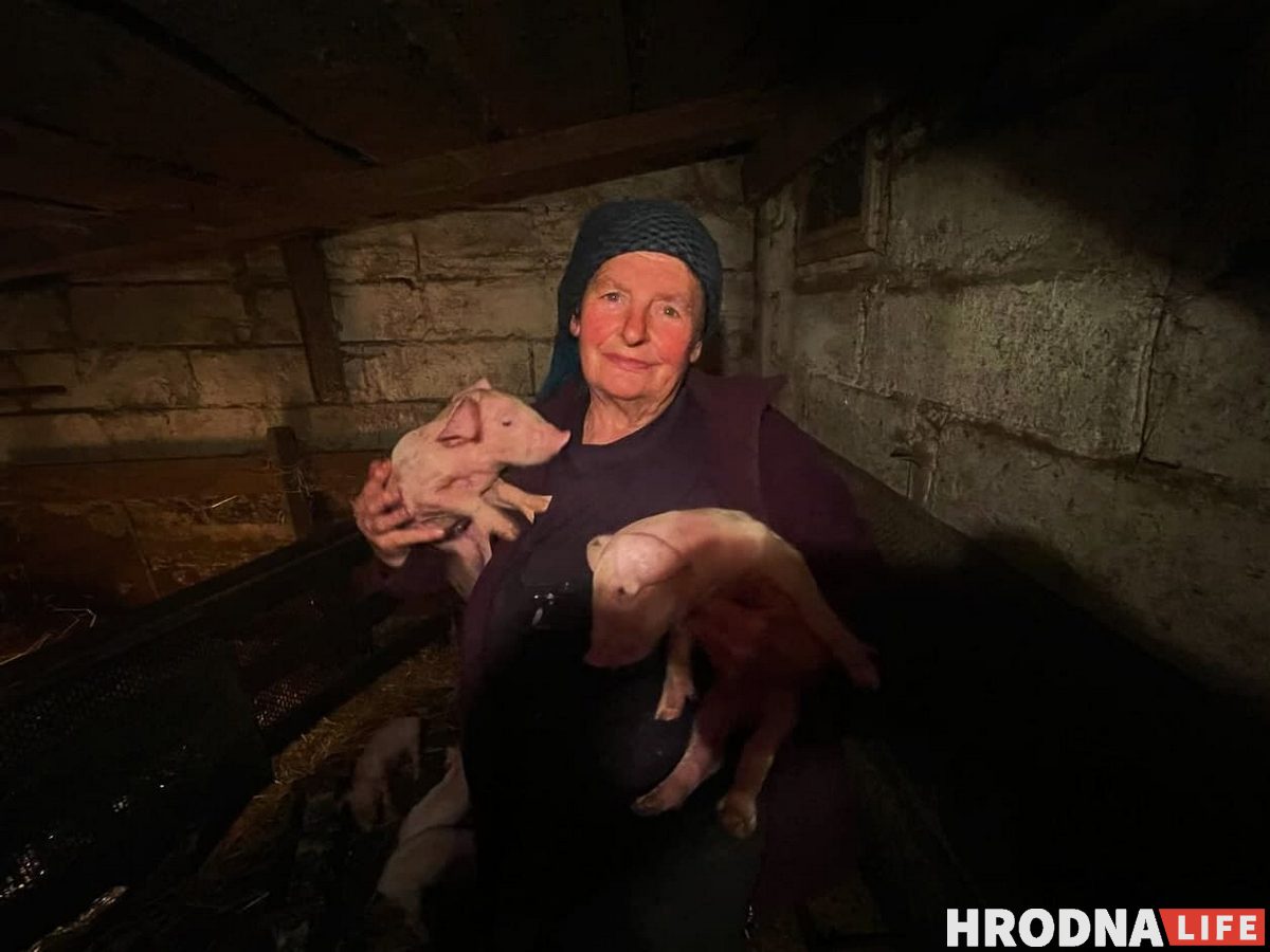 Алина Пирожок родом из деревни Детки Вороновского района. Ей 71 год. Сейчас она живёт недалеко от родины в деревне Мисевичи. Восемь лет она работала заведующей фермы, 20 лет — кассиром. После смерти мужа была молокосборщицей, а теперь её жизнь — это свиньи.«Гэта маё, дзяўчаты, я люблю гэту работу рабіць», — говорит она корреспонденткам Hrodna.life.В этом году свиноматка из её частного хозяйства превзошла все ожидания — родила 22 поросёнка. Из них 19 остались живы.