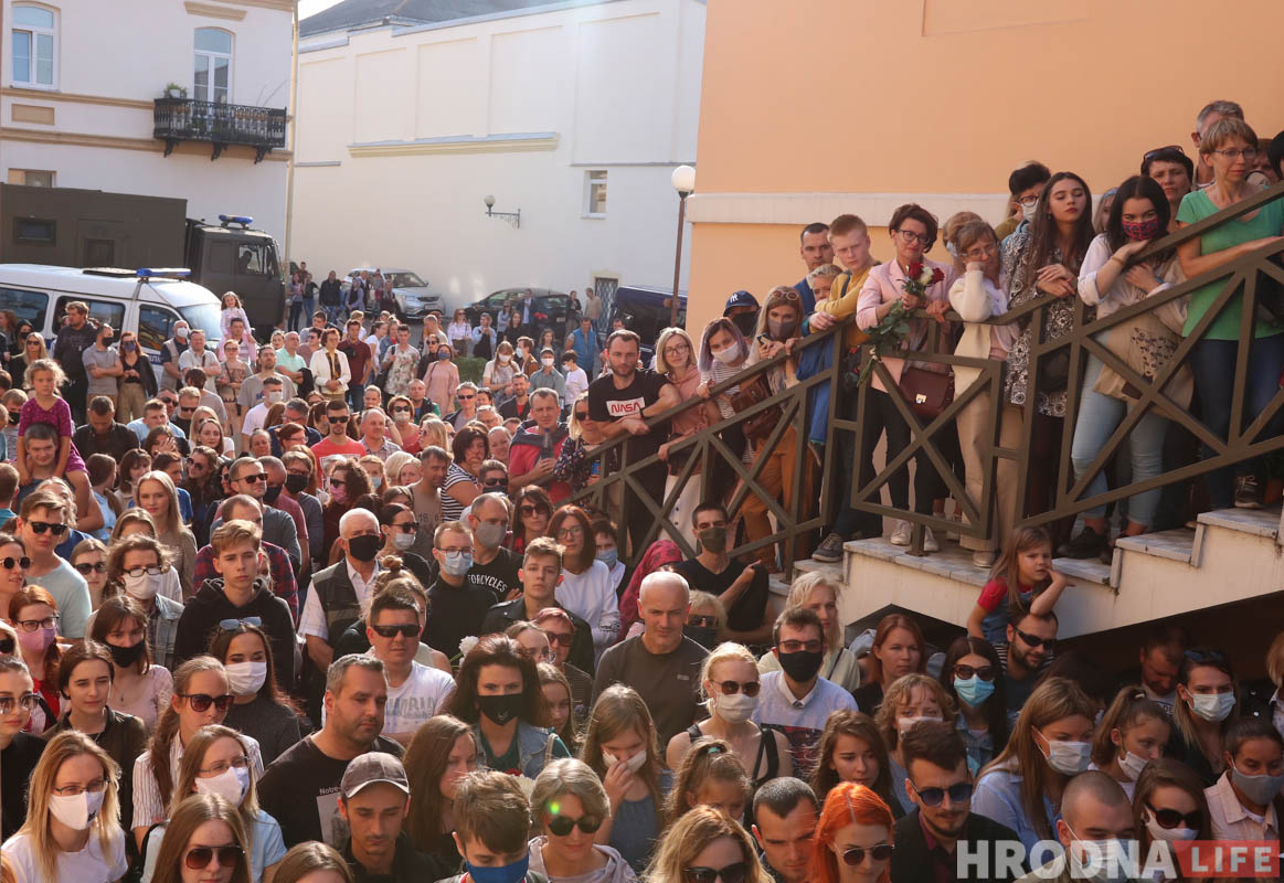 После окончания импровизации часть людей пошла вслед за актерами к театру. Минут через десять автозак, который все это время стоял на стоянке перед двором, завелся и уехал. Гродненцы проводили актеров до ресторана “Неман”, там их попросили дальше не идти. Машины, проезжая мимо, сигналили.