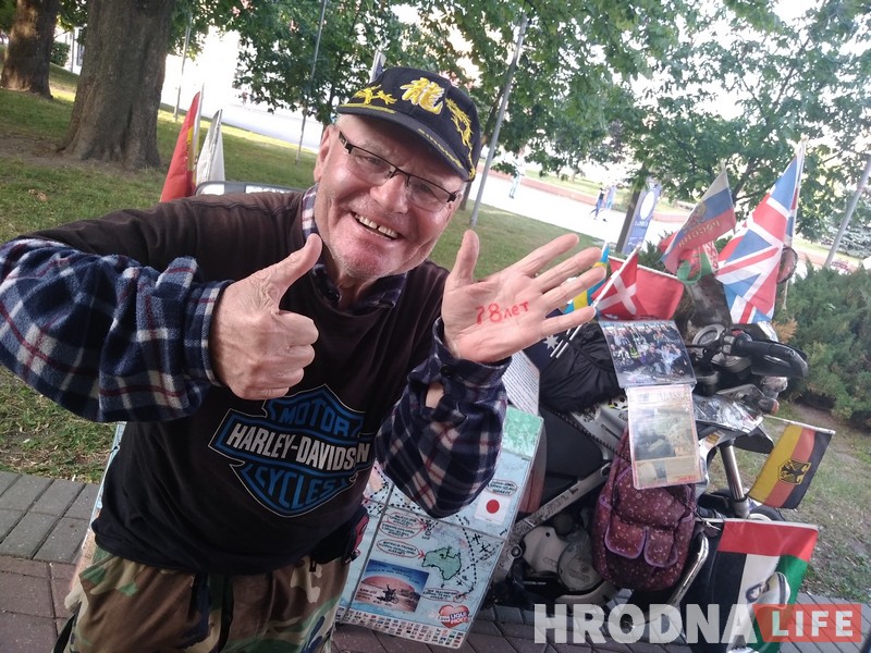 Сейчас “ветеран” мотопутешествий завершает относительно небольшой тур. Выехав из Минска 28 мая Владимир посетил Варшаву и Ганновер, на пароходе из немецкого Киеля добрался до Клайпеды, оттуда через Польшу приехал в Гродно. 17 июня мотоциклист направится домой в Минск.