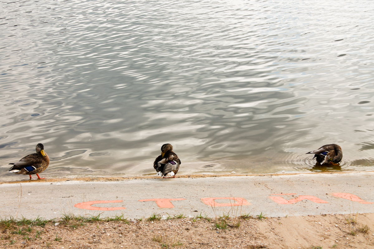 Больше людей мы встретили на центральном пляже в четверг 18 августа. Температура в тот день доходила до 30 градусов. И если на Юбилейном озере много уток и лебедей, то возле Немана компанию отдыхающим составляют чайки и вороны.