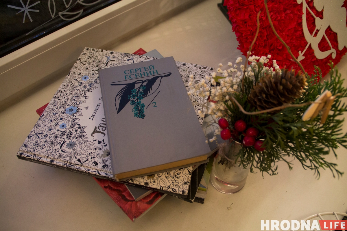 Также у окна лежит стопка немассовых журналов вроде “Культ” и сборник Есенина. Как рассказывает бариста Антон, по большей части это то, что принесли они сами. Книги домой уносить нельзя, но однажды туристка очень просила продать ей два сборника стихотворений белорусских поэтов. Тогда эти сборники ей просто подарили.