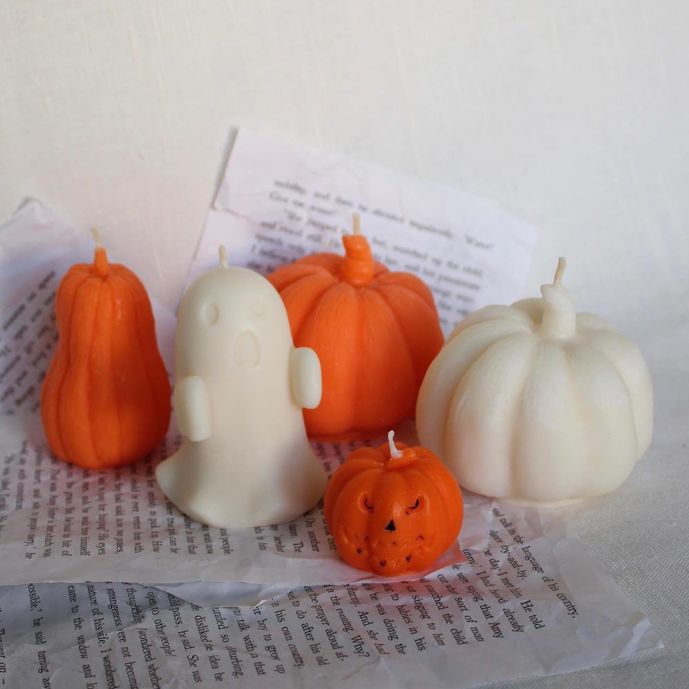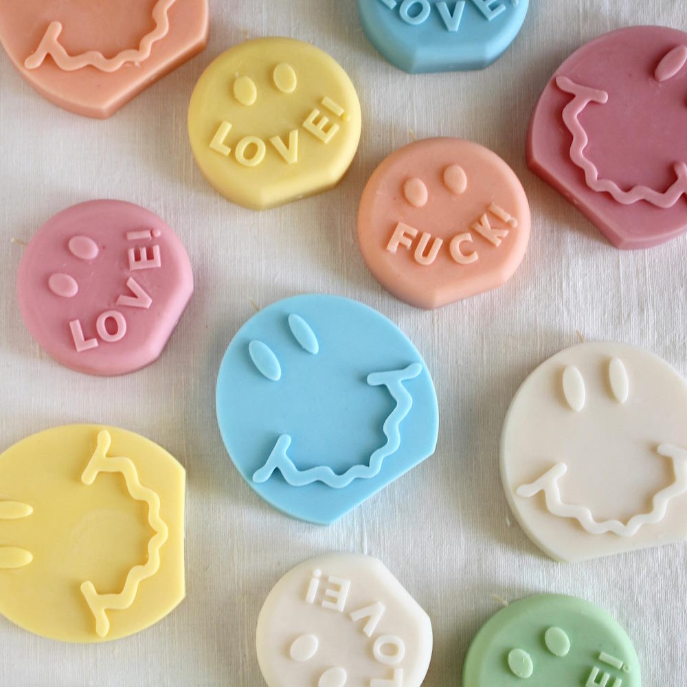Яркие свечи можно купить и у candles.luna. Смайл большой стоит 20 руб., смайл «love» — 15 руб., смайл «f» — 15 руб. У производительницы есть цветные столовые свечи по 22 руб. К Хэллоуину девушка предлагала яркие тематические фигурки.