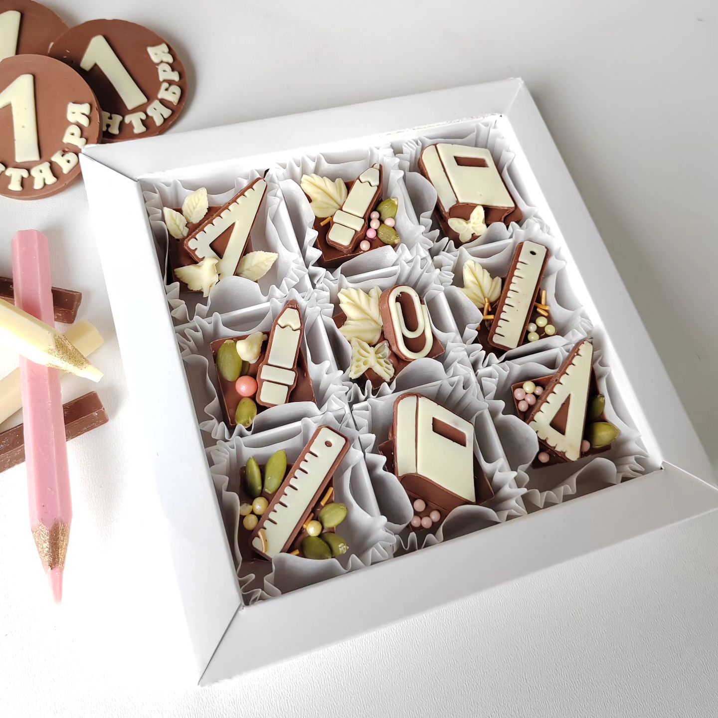Из темперированного шоколада можно сделать все что угодно: карандаши, гайки, разводные ключи… Такие изделия позиционируются как идея для подарков, например, учителям. Коробка с шоколадными школьными принадлежностями от chocolate.grodno весит 135 г и стоит 27 рублей. Шоколадные инструменты весят 330 г, а заплатить за них придется 45 рублей. Съедобные карандаши весом 270 грамм продаются по 15 рублей.