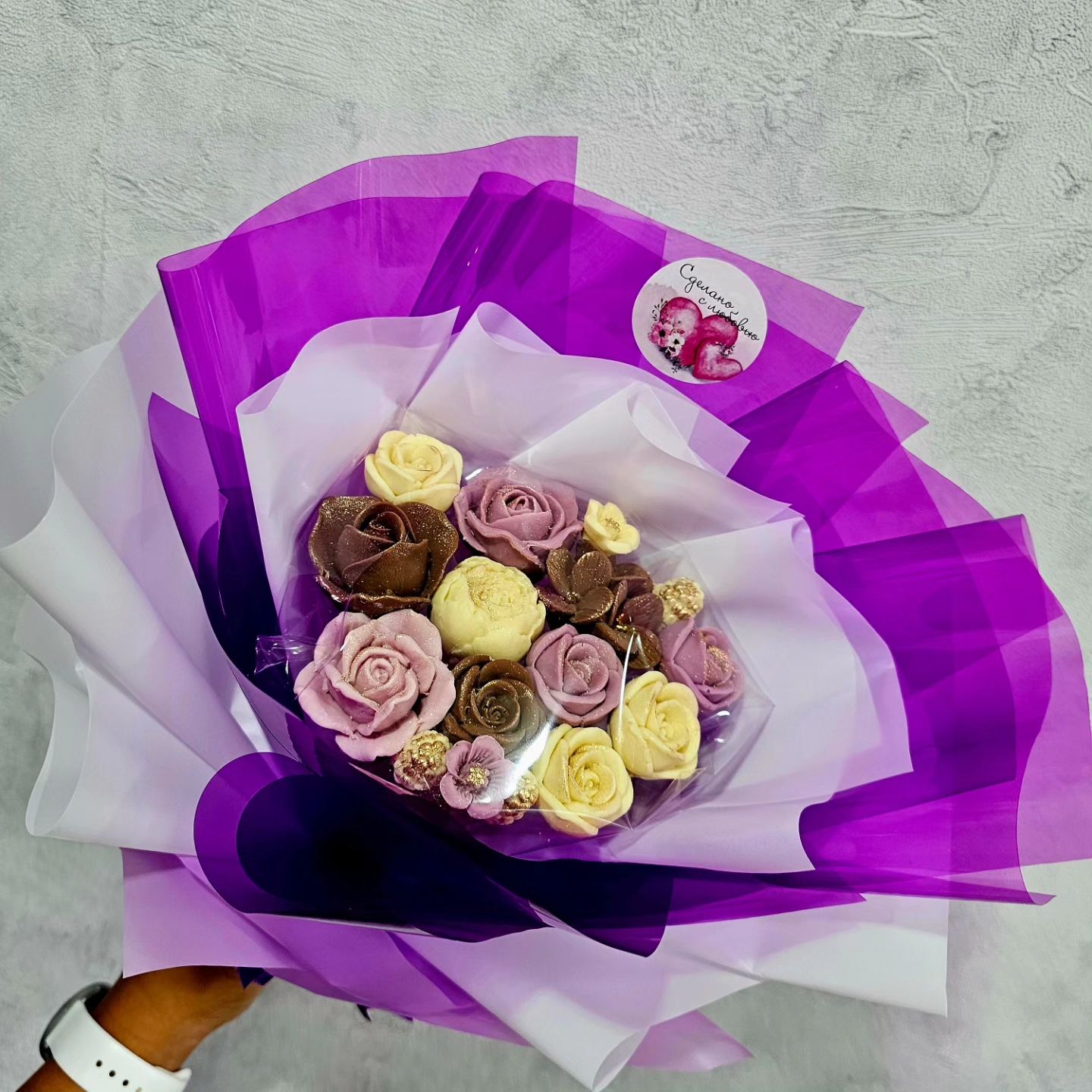 Букеты от 27 рублей продает shokbuket_grodno. Есть более дорогие варианты – за 50, 70, 80 рублей. Производитель рекомендует хранить лакомство два месяца, вдали от солнечных лучей и в прохладном месте. Обещают собрать заказ на любую сумму.