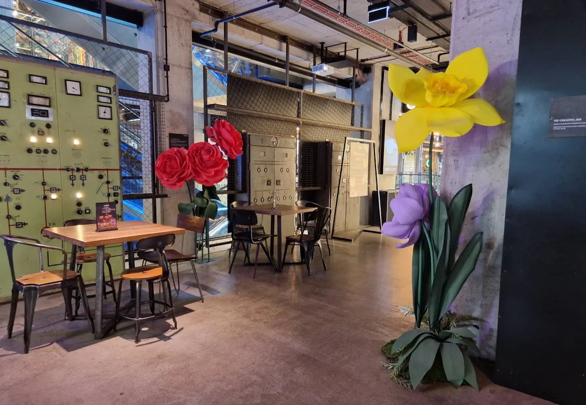 С самого начала проект задумывали так, чтобы сохранить как можно больше исторических элементов и характер застройки, при этом изменив их предназначение. При реставрации использовали традиционные методы обжига кирпича. Две трубы сохранили и подсветили. Предметы из зданий электростанции использовали в интерьере, также из них сделали скульптуры, расставленные по разным этажам.