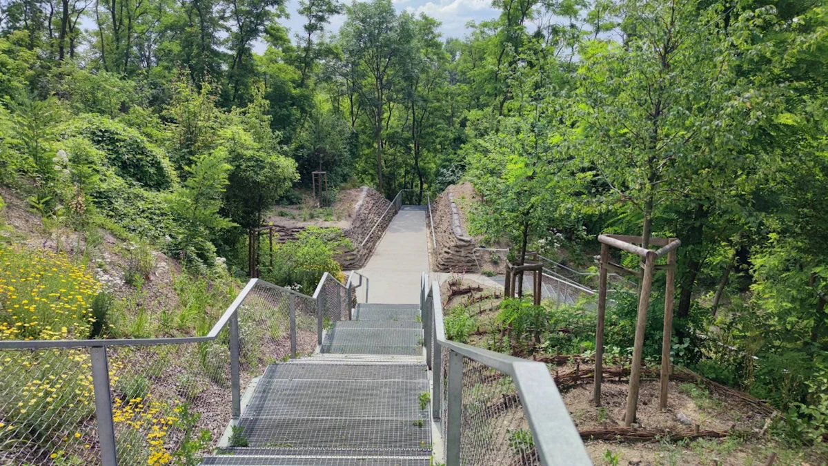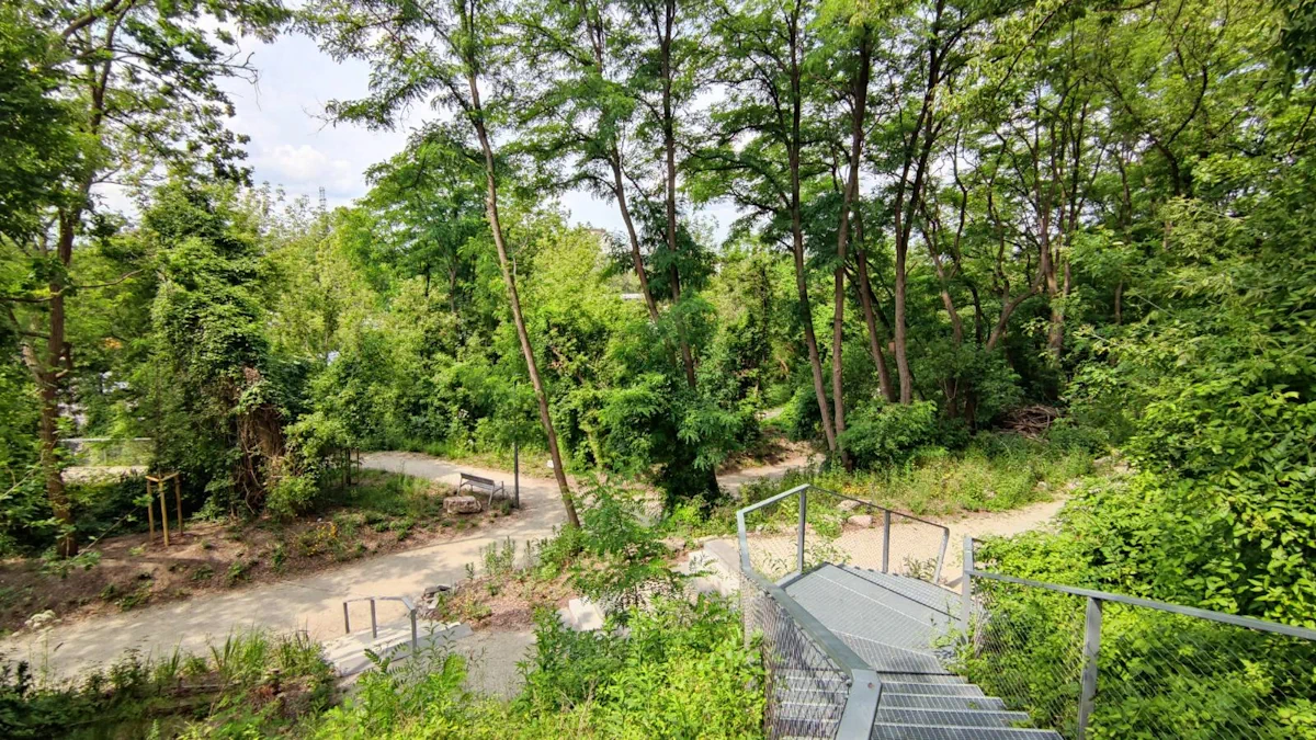 Холм окружает экотропа, так как там живет много птиц, летучие мыши и лисы. Среди высоких акаций соорудили зигзагообразный пешеходный мост с решетчатой поверхностью. Во время реконструкции территории там посадили более 450 молодых парковых деревьев и около 8,5 тыс. саженцев лесных деревьев, а также многочисленные кустарники и многолетние растения местных видов. Сохранили и зоны дикой природы с ограниченным доступом человека. Там специально не проводили освещение, чтобы сохранить природные ритмы для птиц и мелких животных.