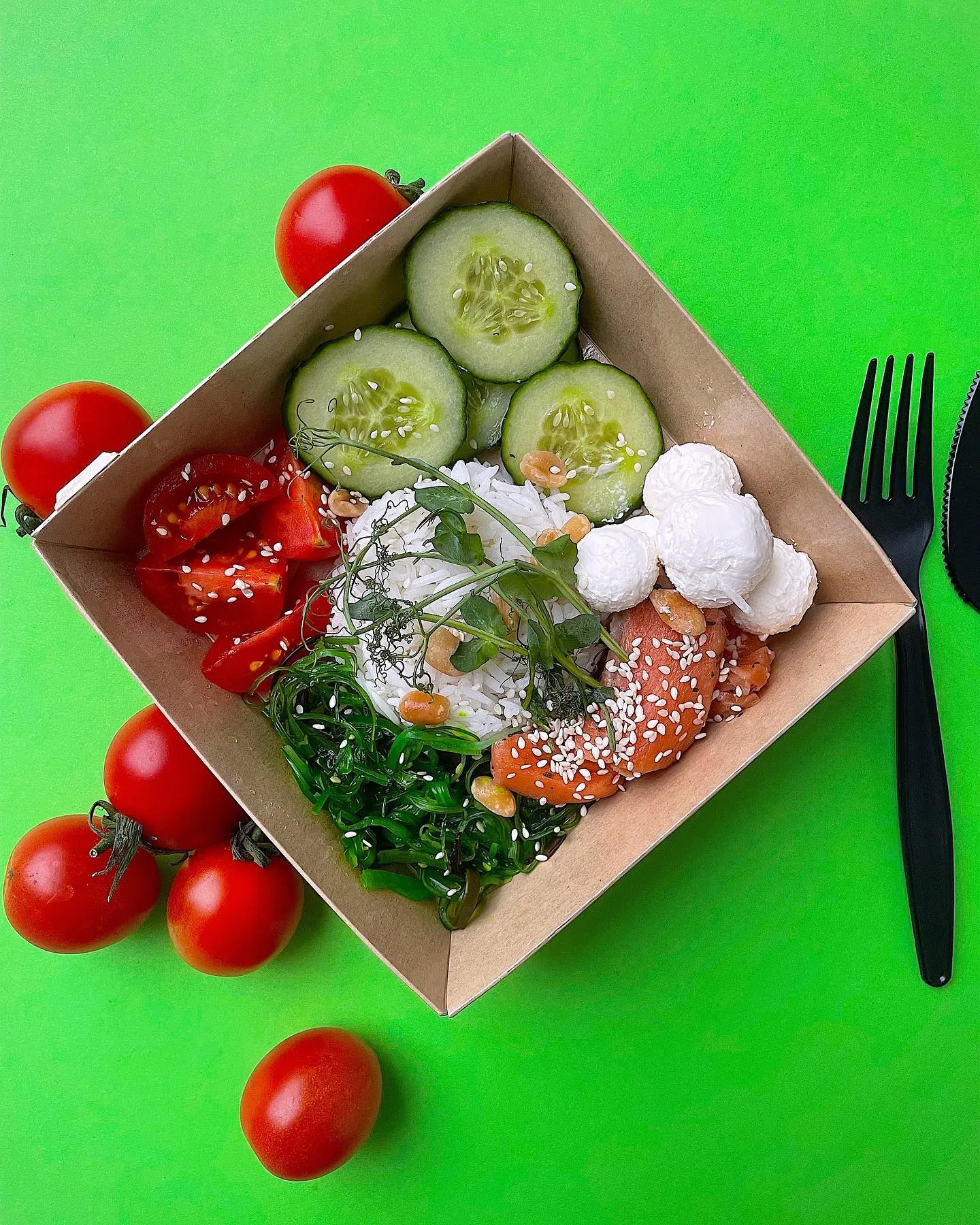 Каждую неделю разрабатывают новое меню. В день предлагают четыре позиции. Например, среди блюд есть: омлет с тунцом и овощами, кальмары со сметаной и рисом, «ПП Рафаэлло» и «НЕ Цезарь».