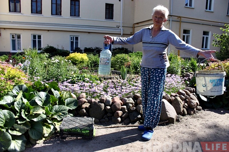 «Хорошо, что на меня обратили внимание. Но формат полива, который предлагает «Гроднозеленстрой», меня не устраивает, — говорит Людмила Ивановна. — Они просто хотят поливать цветы шлангом из бочки, а так делать нельзя — этот полив травматичен для корней растений. У меня много цветов, которые требуют особого ухода. Нельзя все делать для галочки, важен бережный уход. Лучший выход — сделать отдельный вывод воды для цветов».