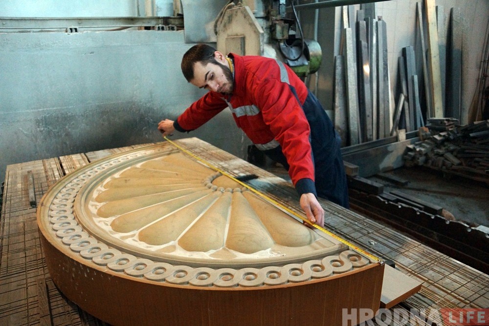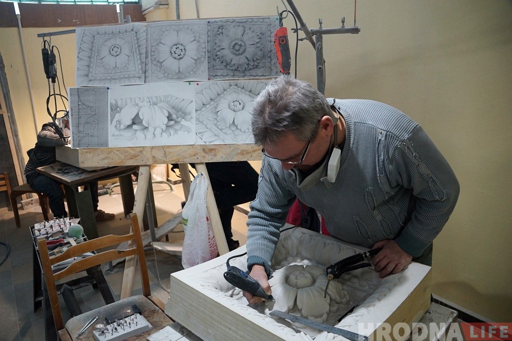 На заводе сегодня активно делают декоративные каменные элементы, некоторые из них уже монтируют на Старом замке. Над реализацией проекта работают высококвалифицированные специалисты: скульпторы, резчики по камню, инженеры, операторы и другие.