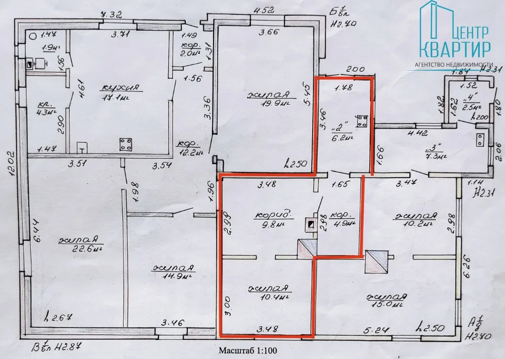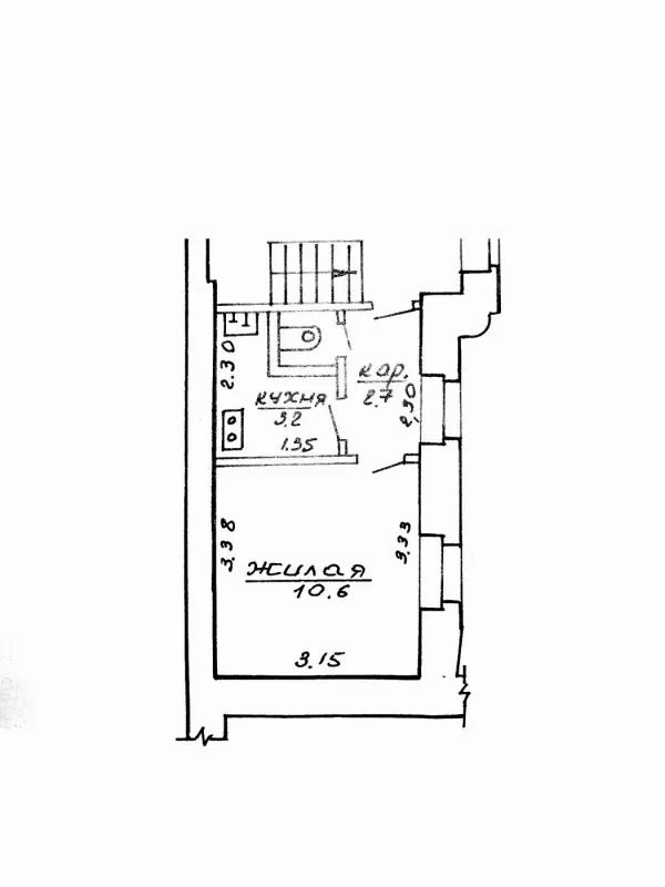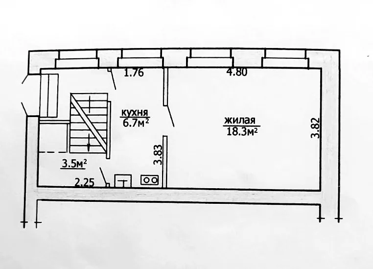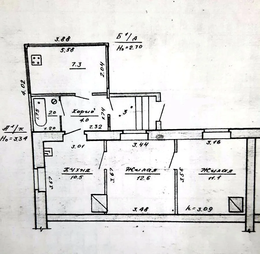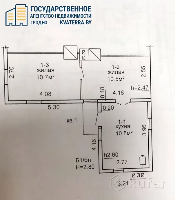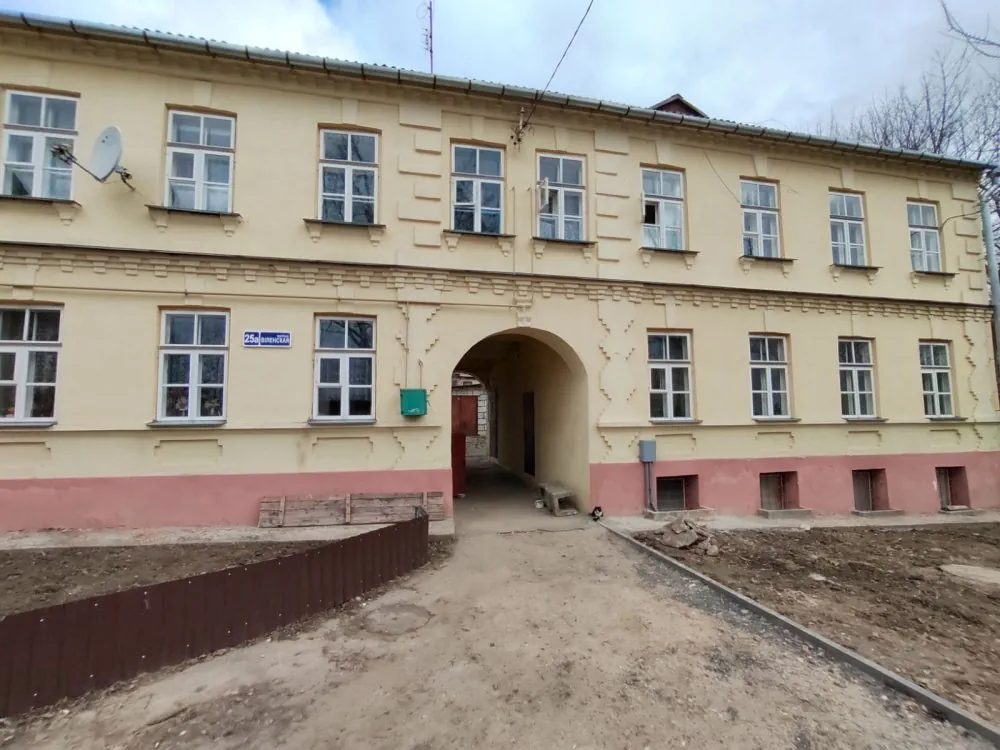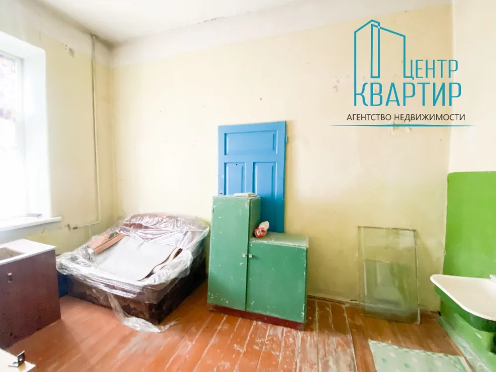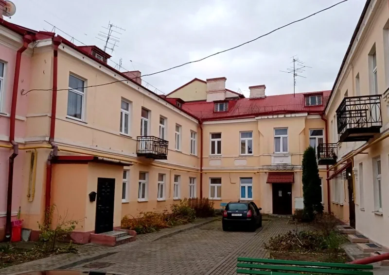 Однокомнатная квартира 28.5 м² в кирпичном доме 1901 года постройки — прямо напротив ворот Гродненского ликеро-водочного завода. В квартире деревянные окна с двойным остеклением, потолки высотой три метра и широкие подоконники. Квартира явно требует ремонта.