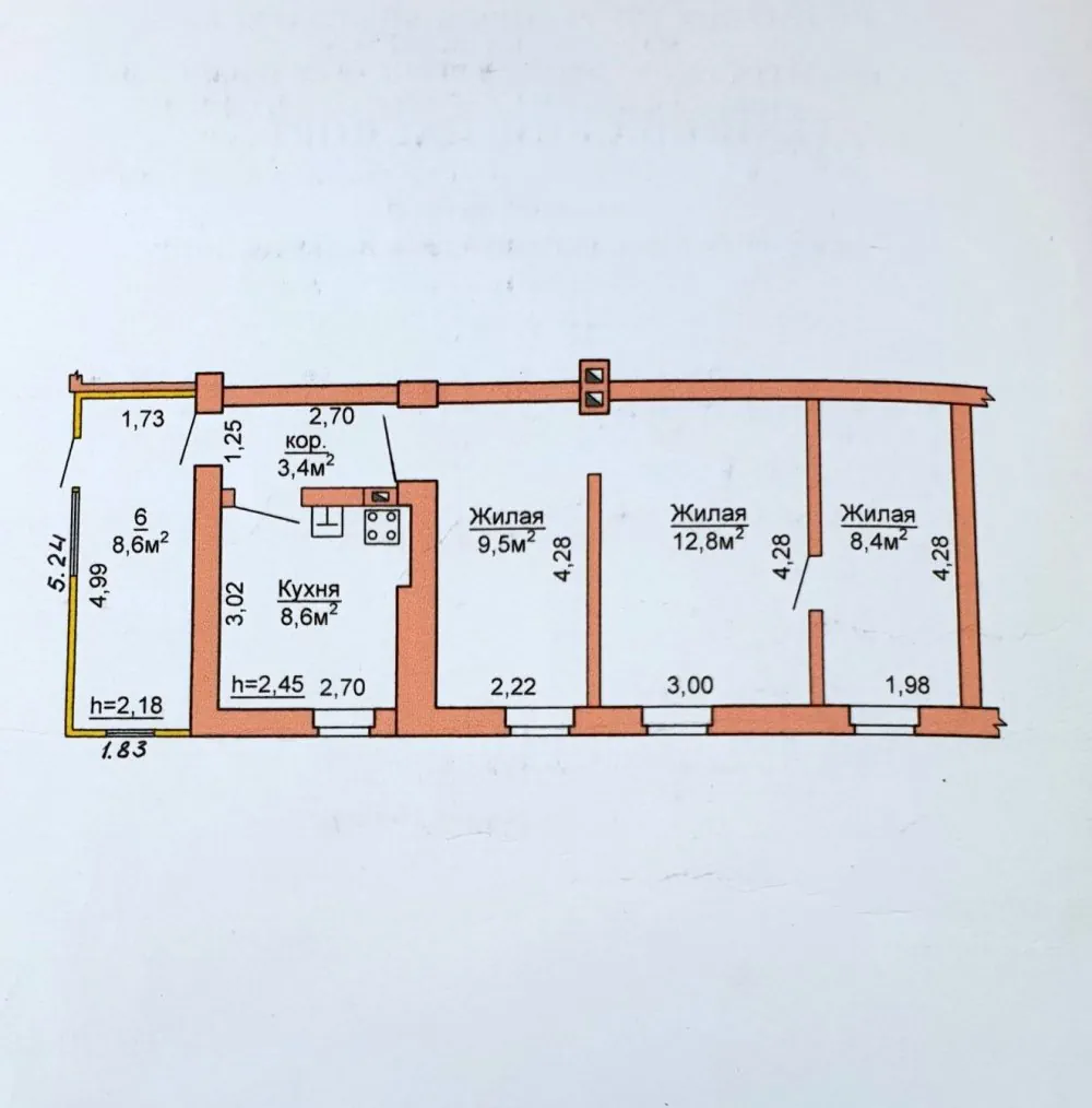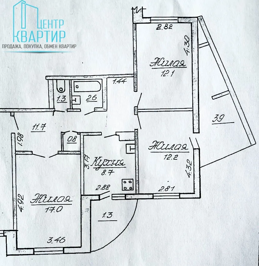 Трехкомнатная квартира в частном кирпичном доме, требующая серьезного ремонта. В квартире есть холодная вода, центральное отопление и канализация, а газ привозной. Есть хозяйственные постройки и двор для парковки автомобиля. Эту же квартиру в другом объявлении продают на $1000 дороже.