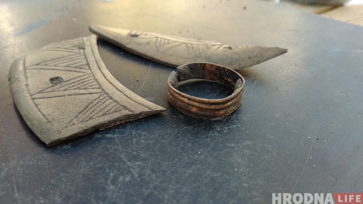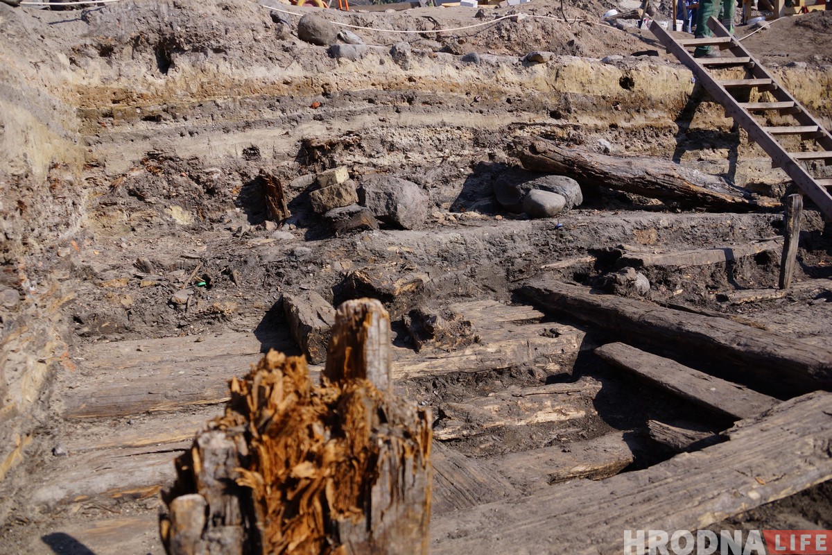 Раскопанную постройку археологи датируют серединой-концом 14 века. Сруб дома, деревянный пол и фундамент печи хорошо сохранились. Дом оказался богатым на находки: в нем нашли украшения, предметы быта и фрагменты металлических слитков — тогдашние деньги. Hrodna.life посетил раскопки 19 сентября.