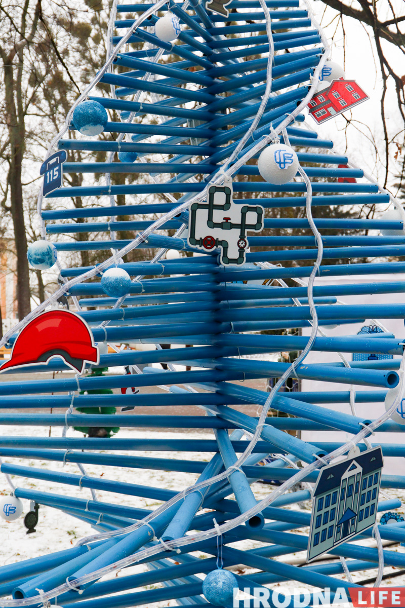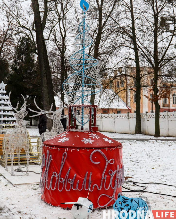 “Гродногаз” поставил суровую елочку-горелку и прообраз нового 2022 года из баллона.