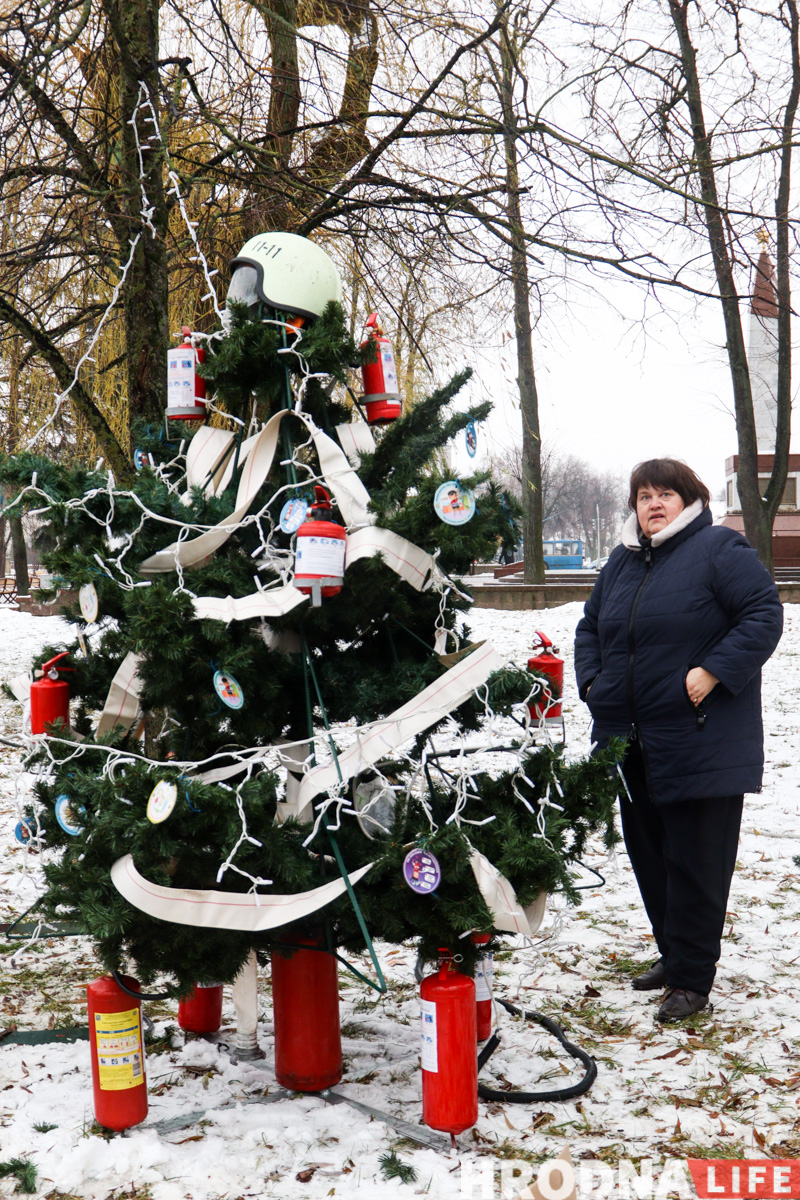 Гродненское МЧС подготовило фотозону, где можно стать водителем части машины. Елочку украсили всем нужным: шлемом, пожарными извещателями, огнетушителями и пожарным шлангом.