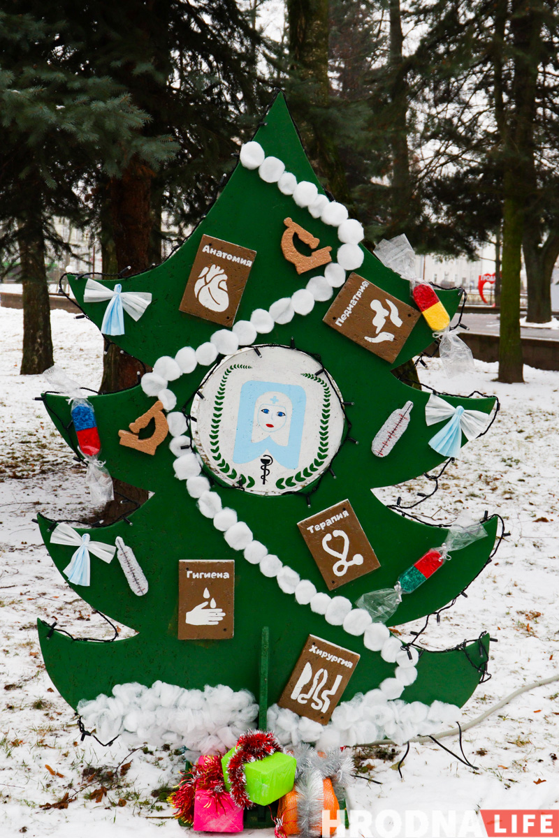 К 10 декабря в Гродно в парке Жилибера установили уже традиционные новогодние елки от организаций и предприятий города. Некоторые сохранили стиль прошлых лет, “Беларусбанк” поставил елку-инфокиоск (он будет работать!), поликлиники сконцентрировались на коронавирусе, а “Гродногипрозем” порекламировал свои услуги. В этом сезоне стало меньше агротреша и больше фотозон.