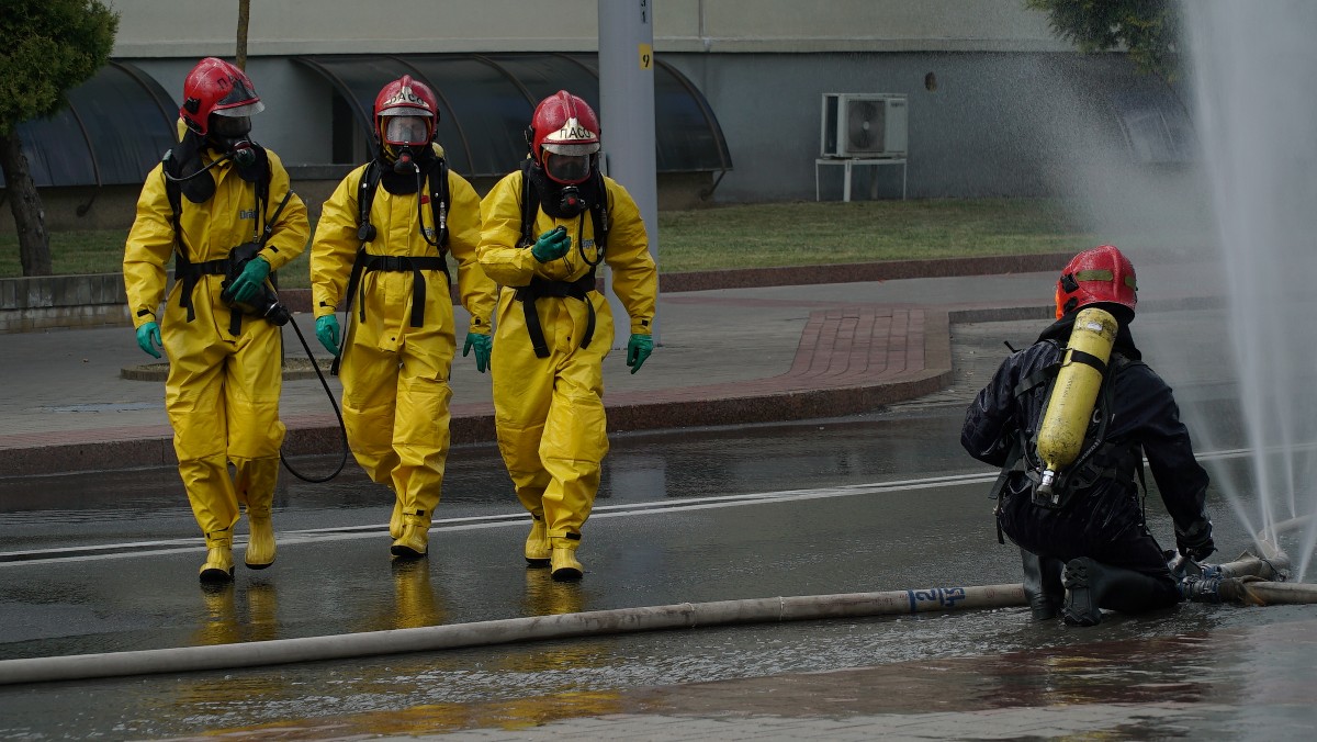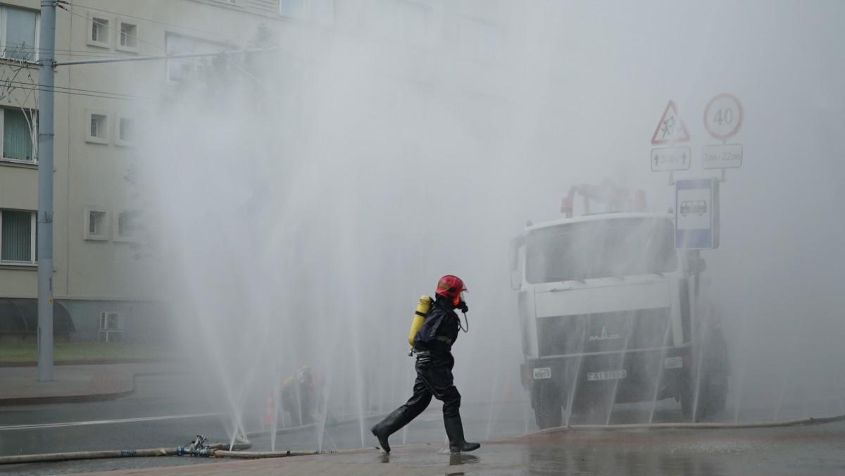 На вуліцы Дзяржынскага дэманстравалі магчымасці МНС пры ліквідацыі надзвычайных сітуацый. Ратавальнікі тушылі аўтамабілі, а таксама дапамагалі людзям выратавацца з будынка які «загарэўся».