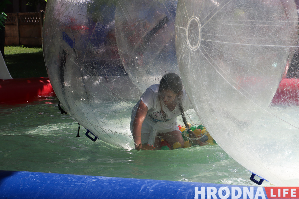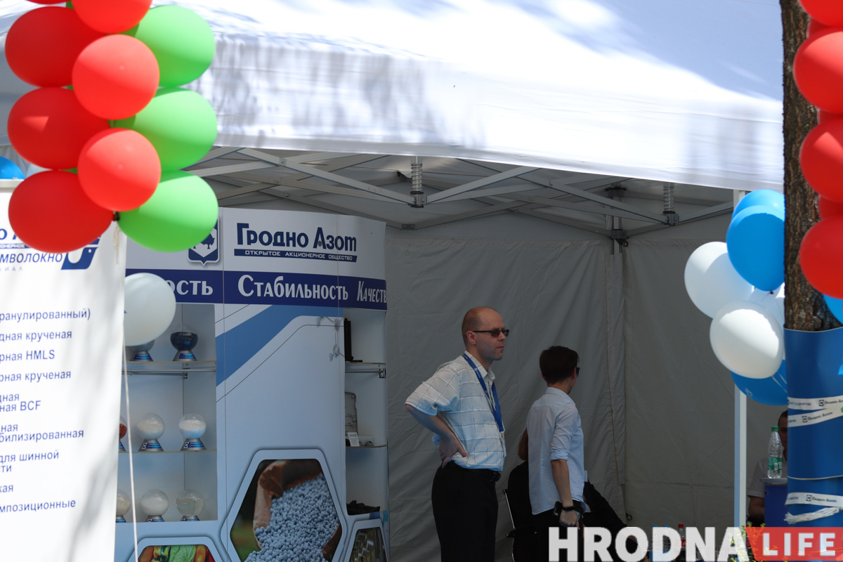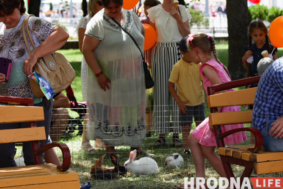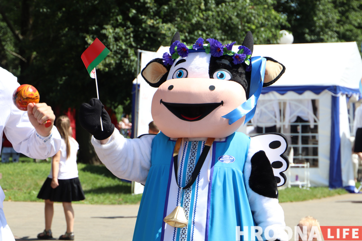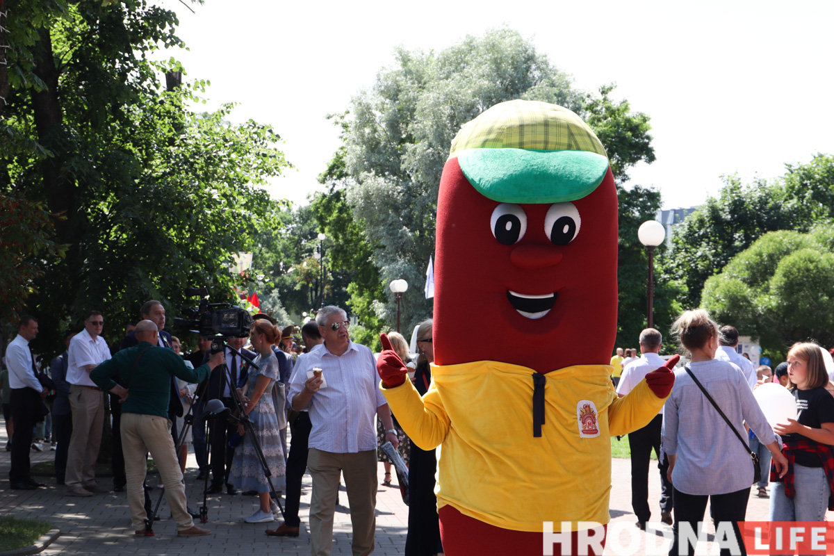 Больше всего гродненцев днем на празднике было в парке Жилибера. Там работали тематические палатки городских предприятий и служб, можно было поучаствовать в конкурсах от «Молочного мира», получить флажок от коровы в сарафане, попробовать, выиграть или приобрести сыр и другую продукцию. У стенда «Привала» ходил гигантский медведь. В долине Городничанки разместили площадки специализированной детско-юношеской школы олимпийского резерва №4.