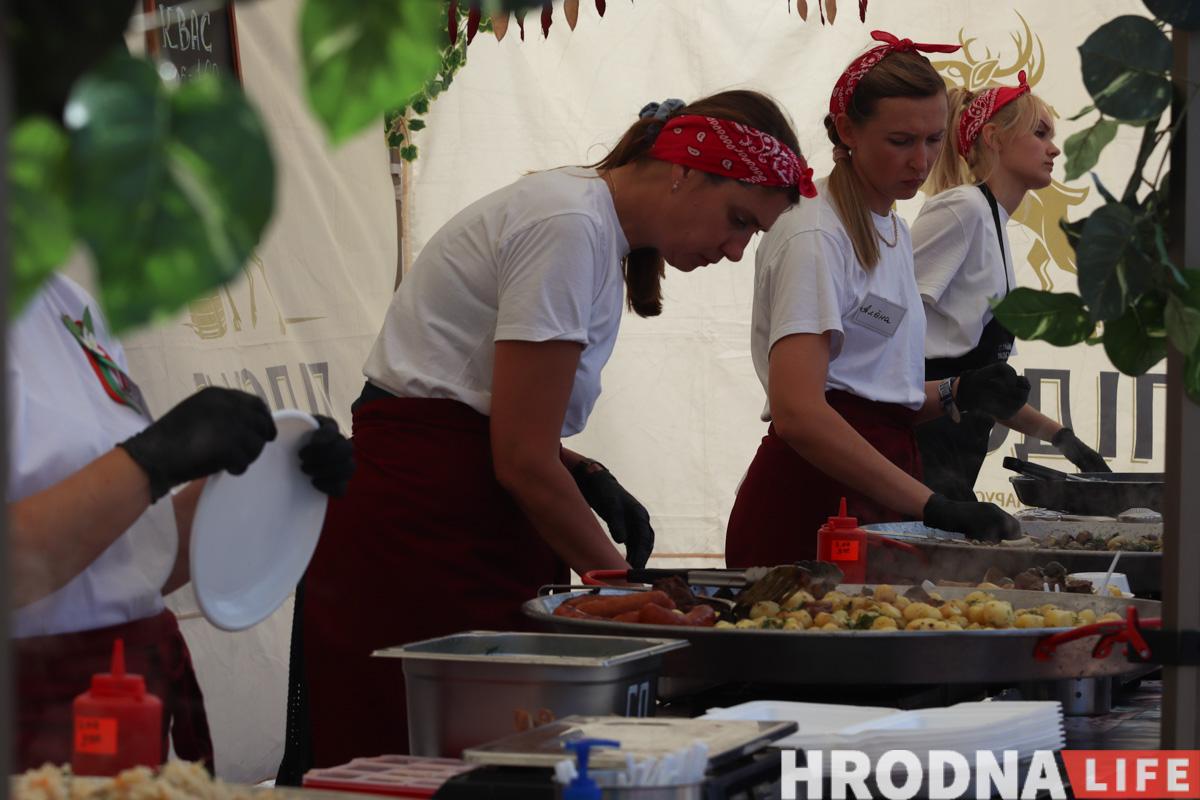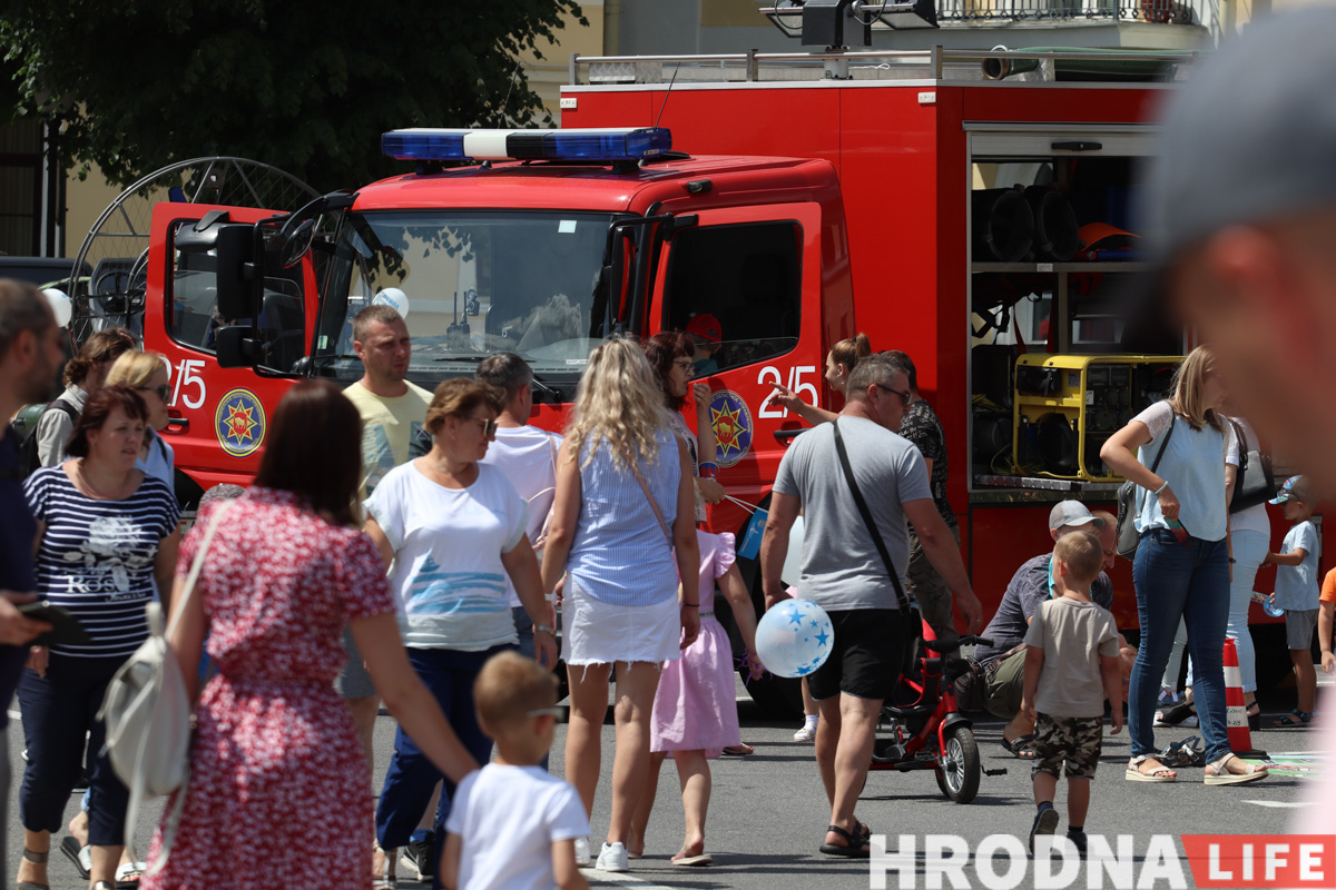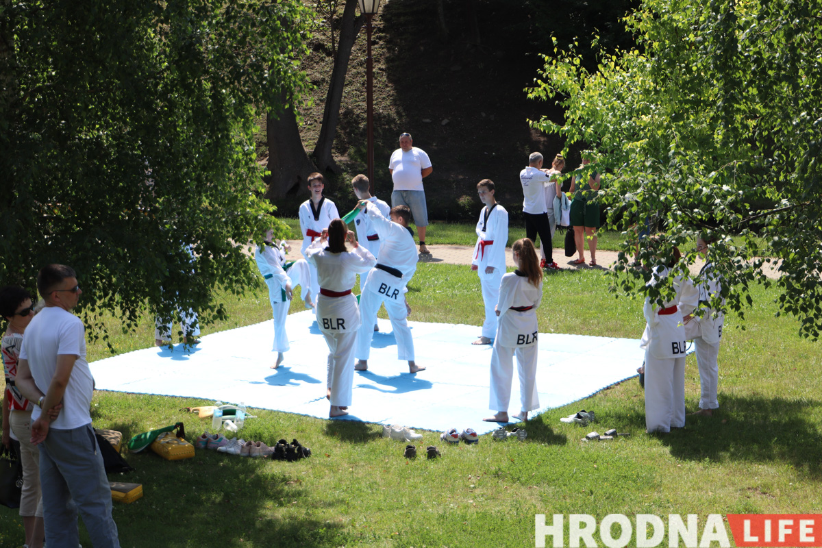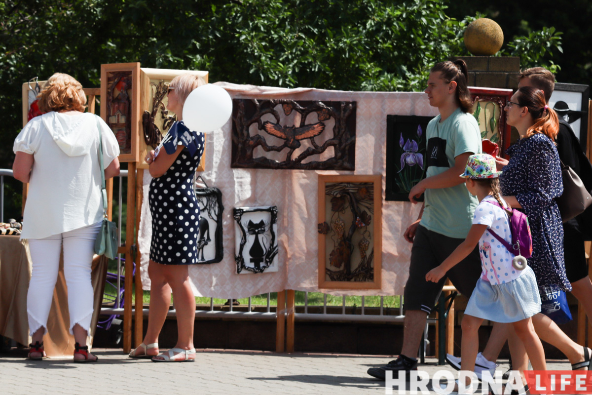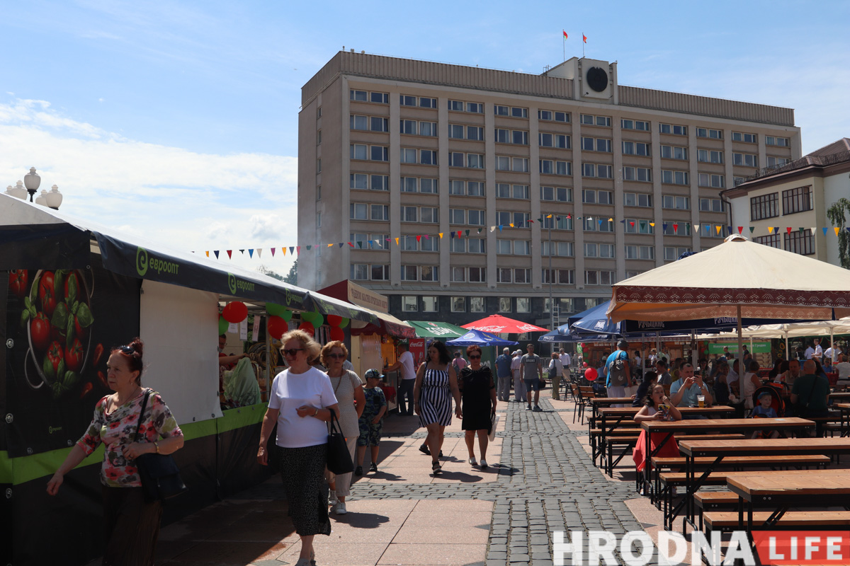 Больше всего гродненцев днем на празднике было в парке Жилибера. Там работали тематические палатки городских предприятий и служб, можно было поучаствовать в конкурсах от «Молочного мира», получить флажок от коровы в сарафане, попробовать, выиграть или приобрести сыр и другую продукцию. У стенда «Привала» ходил гигантский медведь. В долине Городничанки разместили площадки специализированной детско-юношеской школы олимпийского резерва №4.