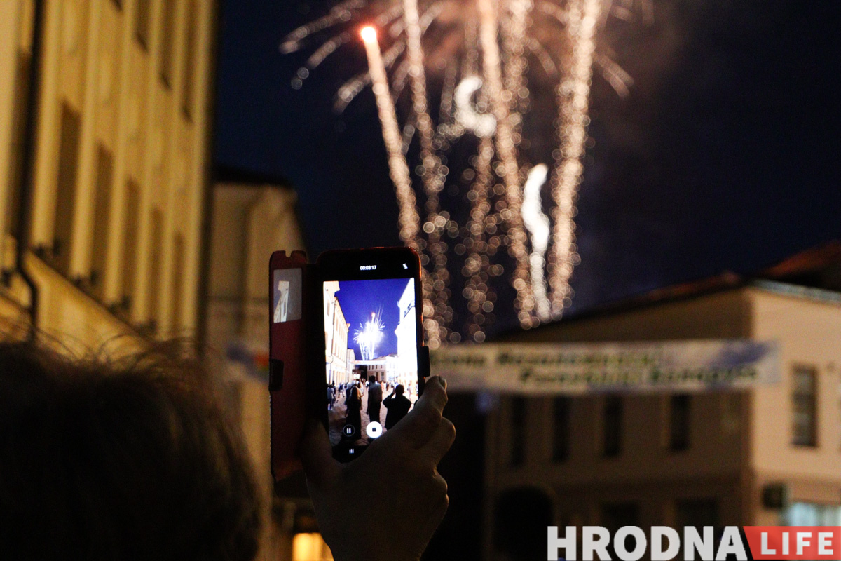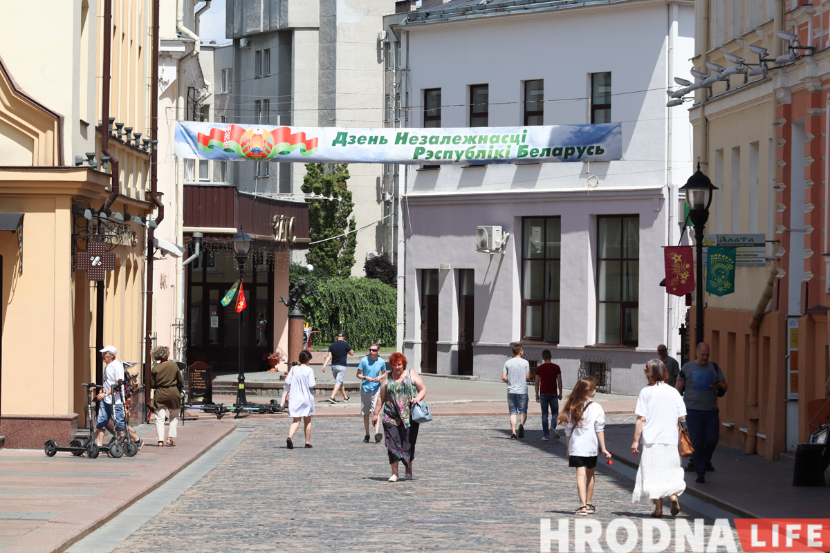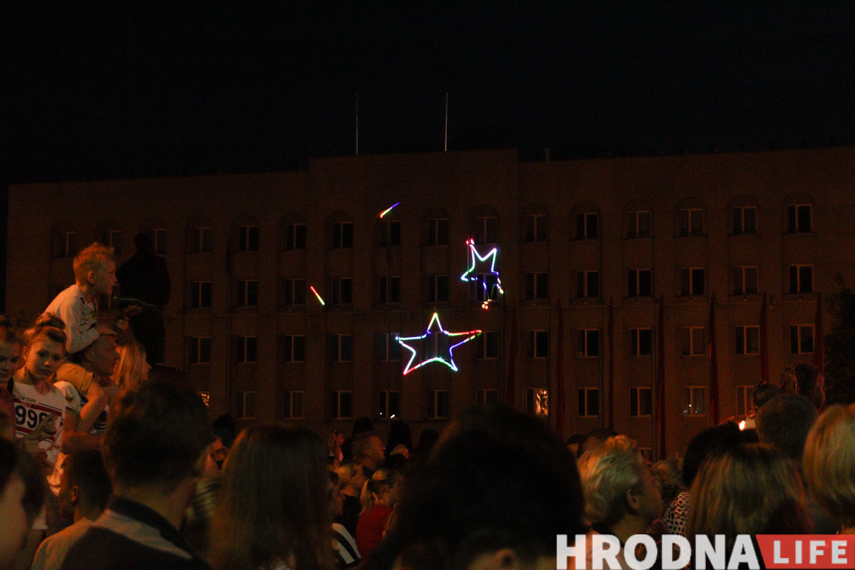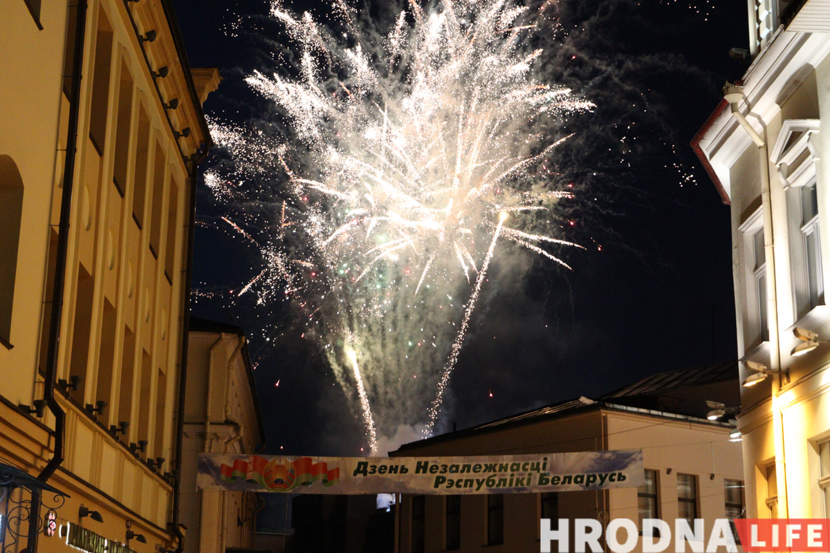 День Независимости в Гродно начали праздновать с возложения цветов к вечному огню в парке Жилибера и продолжили концертом на площади Ленина. После торжественного вступления большинство участников разошлись по другим местам. Снова людно на площади стало вечером. С крыши горисполкома запустили салют, а на главной сцене выступали Тео и Ольга Рыжикова.