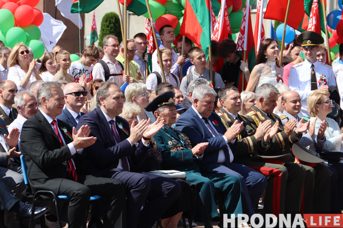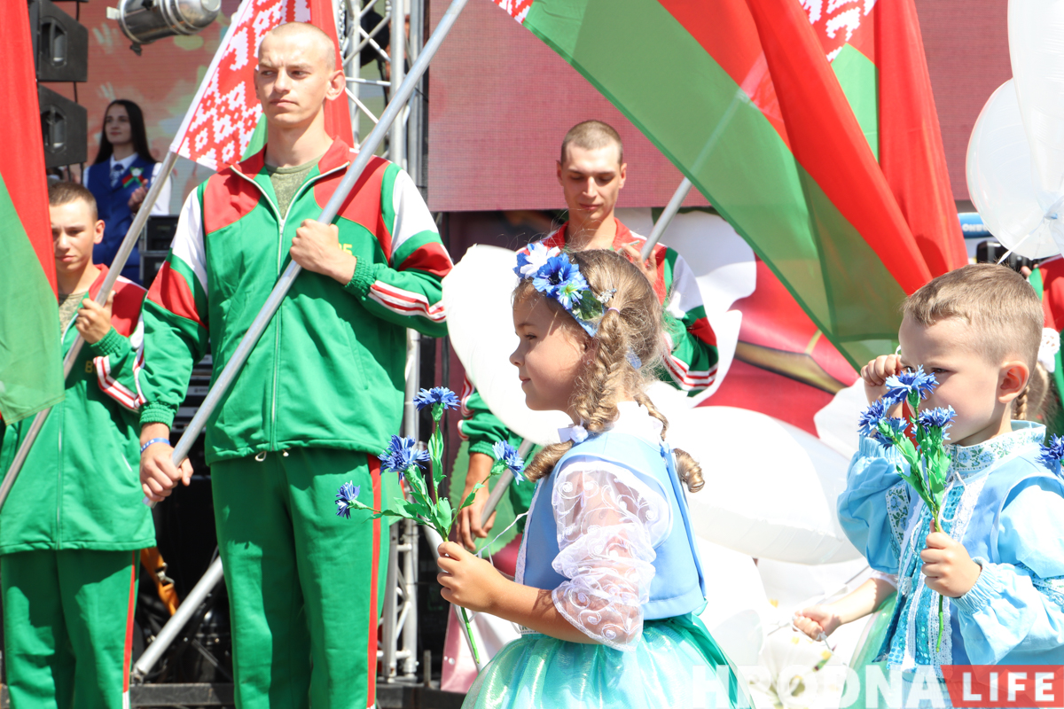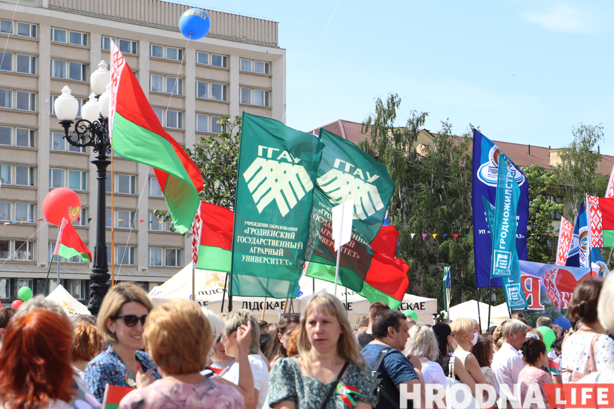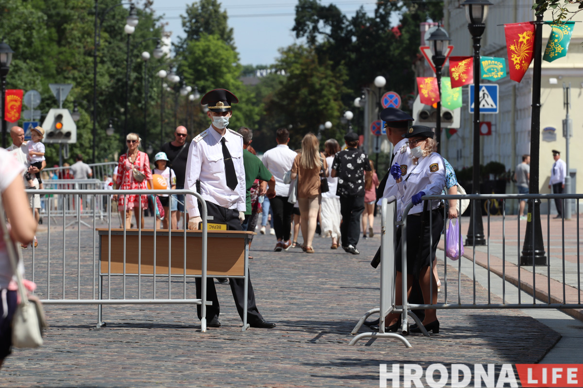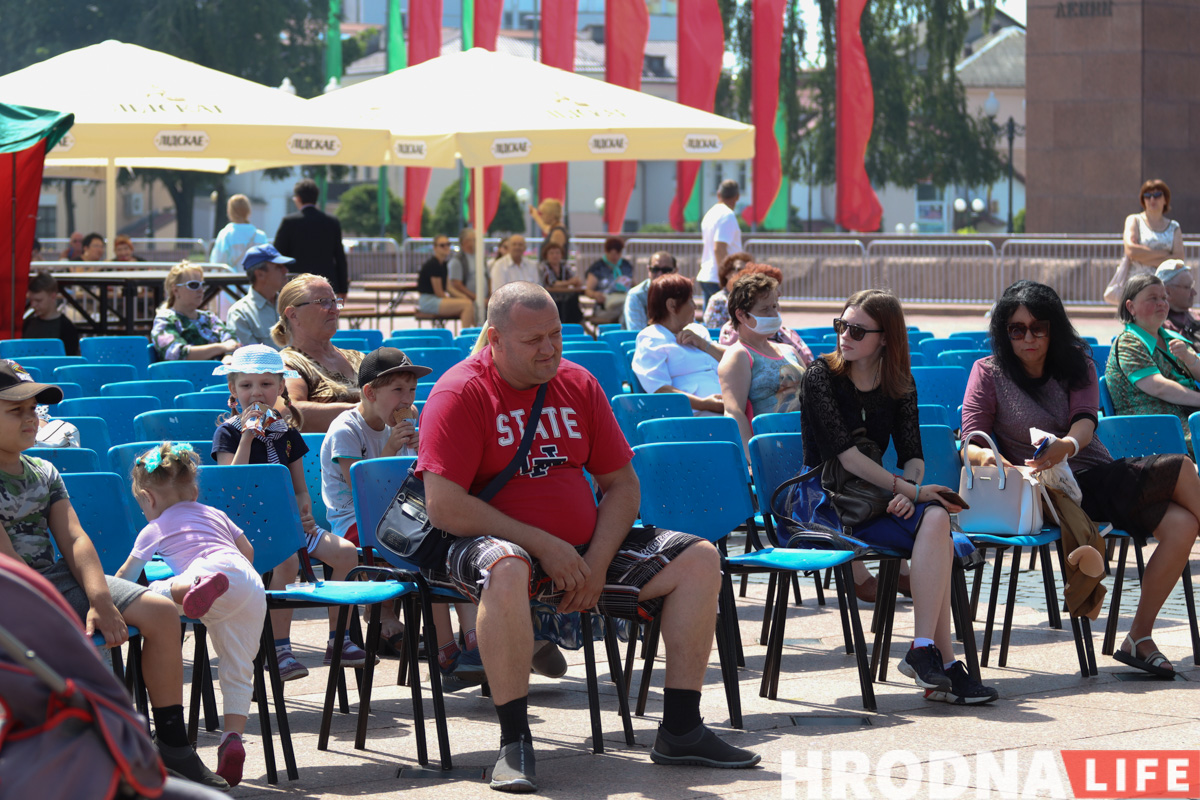 День Независимости в Гродно начали праздновать с возложения цветов к вечному огню в парке Жилибера и продолжили концертом на площади Ленина. После торжественного вступления большинство участников разошлись по другим местам. Снова людно на площади стало вечером. С крыши горисполкома запустили салют, а на главной сцене выступали Тео и Ольга Рыжикова.