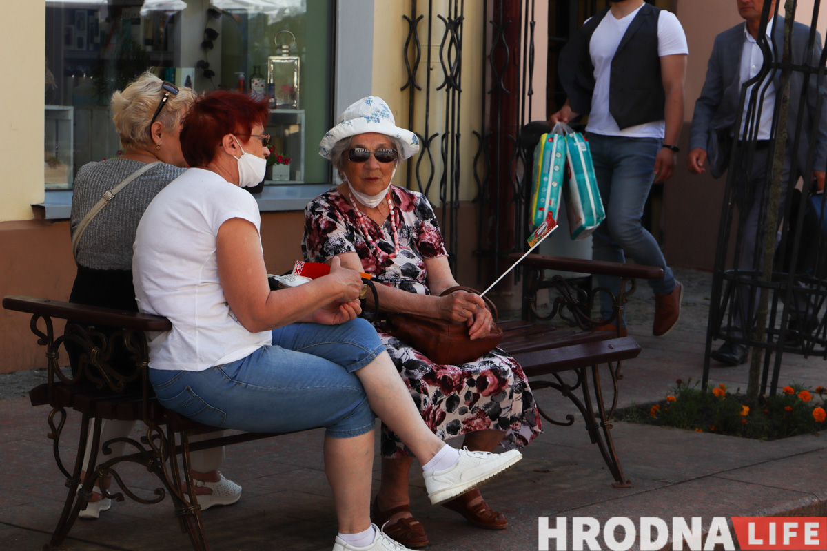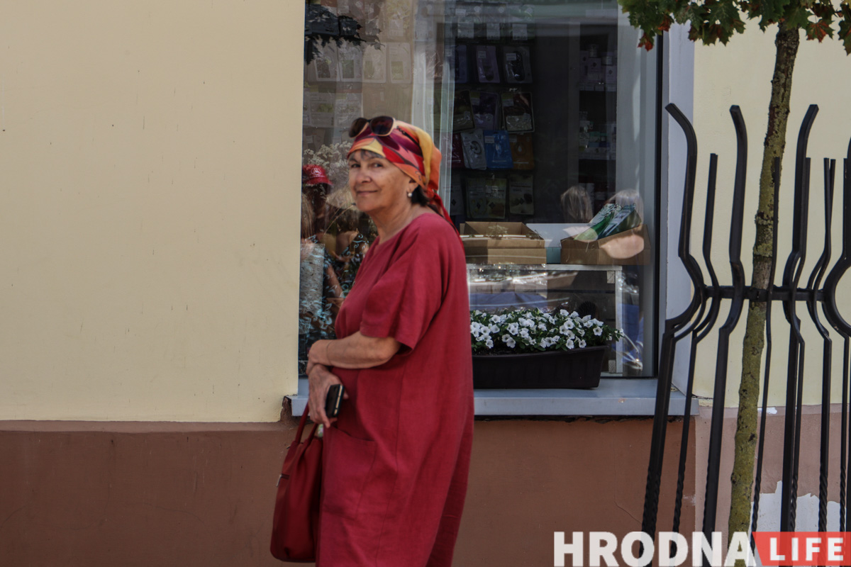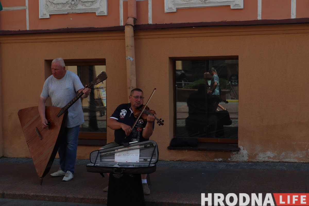 На Советской улице и площади толпы не было, гродненцы гуляли, как в обычный выходной день. Атмосферу разбавили выступления артистов областной филармонии в рамках проекта «Концерты на балконе».