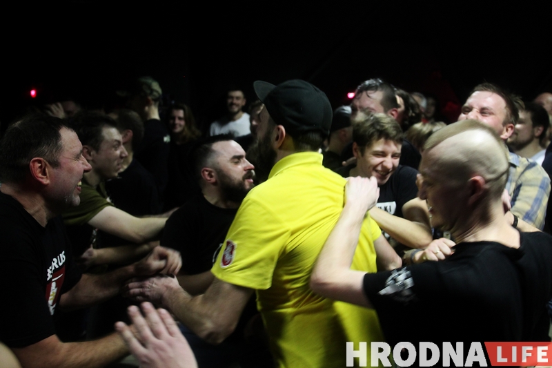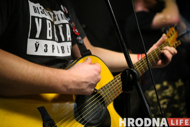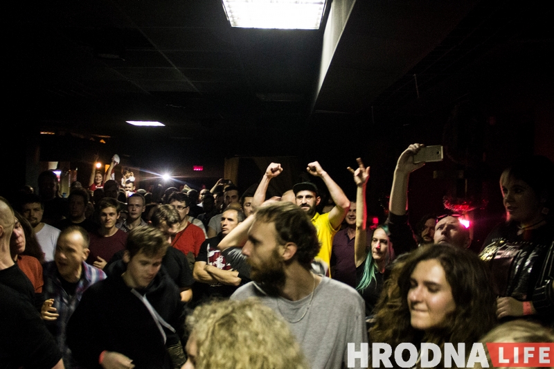 Заходим на площадку возле бара, где включают музыку группы. Почти все люди — знакомые. На входе встречаем небольшую очередь. «Мы никогда ни на что не рассчитываем. Придет 20 человек — будем петь для 20-ти. Но, поверьте, будет полный зал», — говорит Денисов. И правда, как скажут позже организаторы, в гродненский BIG BAR набилось 230 человек.
